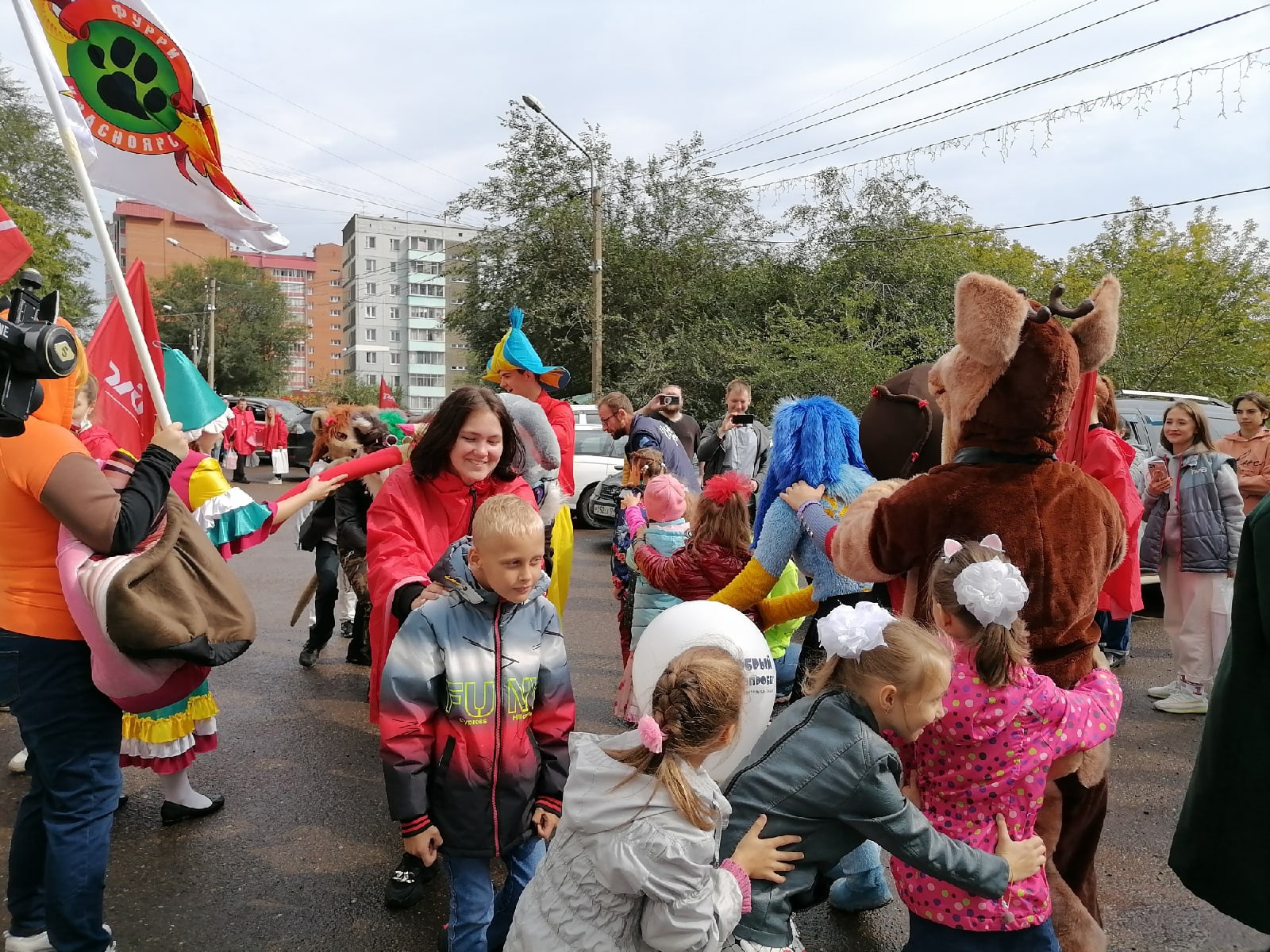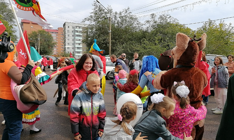 Наши ребята с особым трепетом раздавали наборы для школьников, а также в костюмах ростовых кукол играли с малышами.