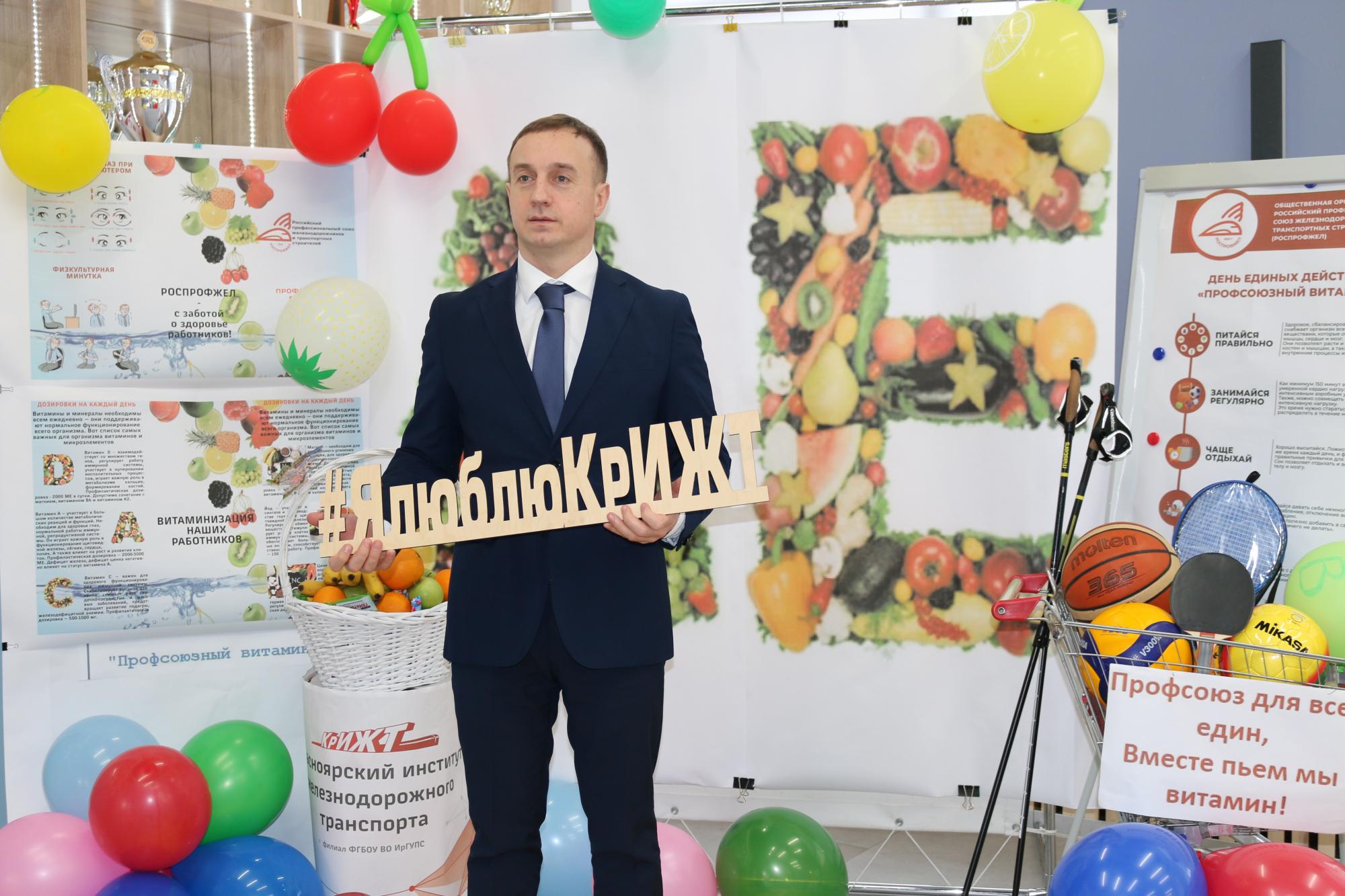 Члены профкома ППО КрИЖТ ИрГУПС оформили фотозону, где все желающие смогли сделать фото и ознакомиться с информацией о проводимой акции Единый день действий «Профсоюзный витамин».