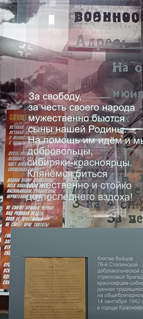 Музейный комплекс посвящён памяти погибших на войне сибиряков-красноярцев, был открыт в 1975 году. Он расположен в исторической части города, на Покровской горе. На площади расположено 22 надгробия - захоронения солдат, скончавшихся от ран в госпиталях Красноярска. Перед зданием музея горит Вечный огонь - символ памяти о суровых военных буднях, о героических подвигах советских солдат.