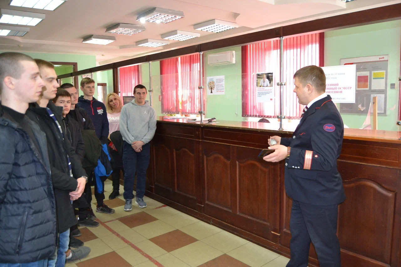 Начальник депо ТЧЭ-3 Иланская Лысак Николай Николаевич ознакомил студентов с историей развития предприятия, его традициями. Ознакомил с организацией работы оперативного персонала в цехе эксплуатации. Особое внимание уделил порядку формирования локомотивных бригад, явки на работу, прохождению предрейсового медицинского осмотра и инструктажа по безопасности движения поездов.