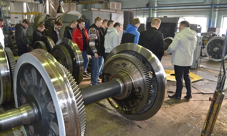 Далее, группы посетили вагонно-колесные мастерские, где им был наглядно продемонстрирован ремонт колесной пары грузового вагона со сменой элементов. Специалисты показали процесс спрессовки изношенных центров колесной пары с оси и процесс формирования новой колесной пары с подбором новых центров по натягу к оси колесной пары с последующей напрессовкой.