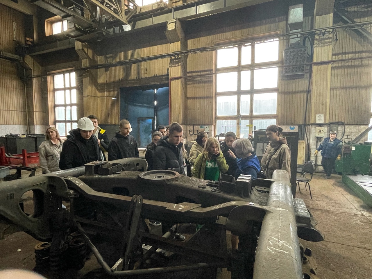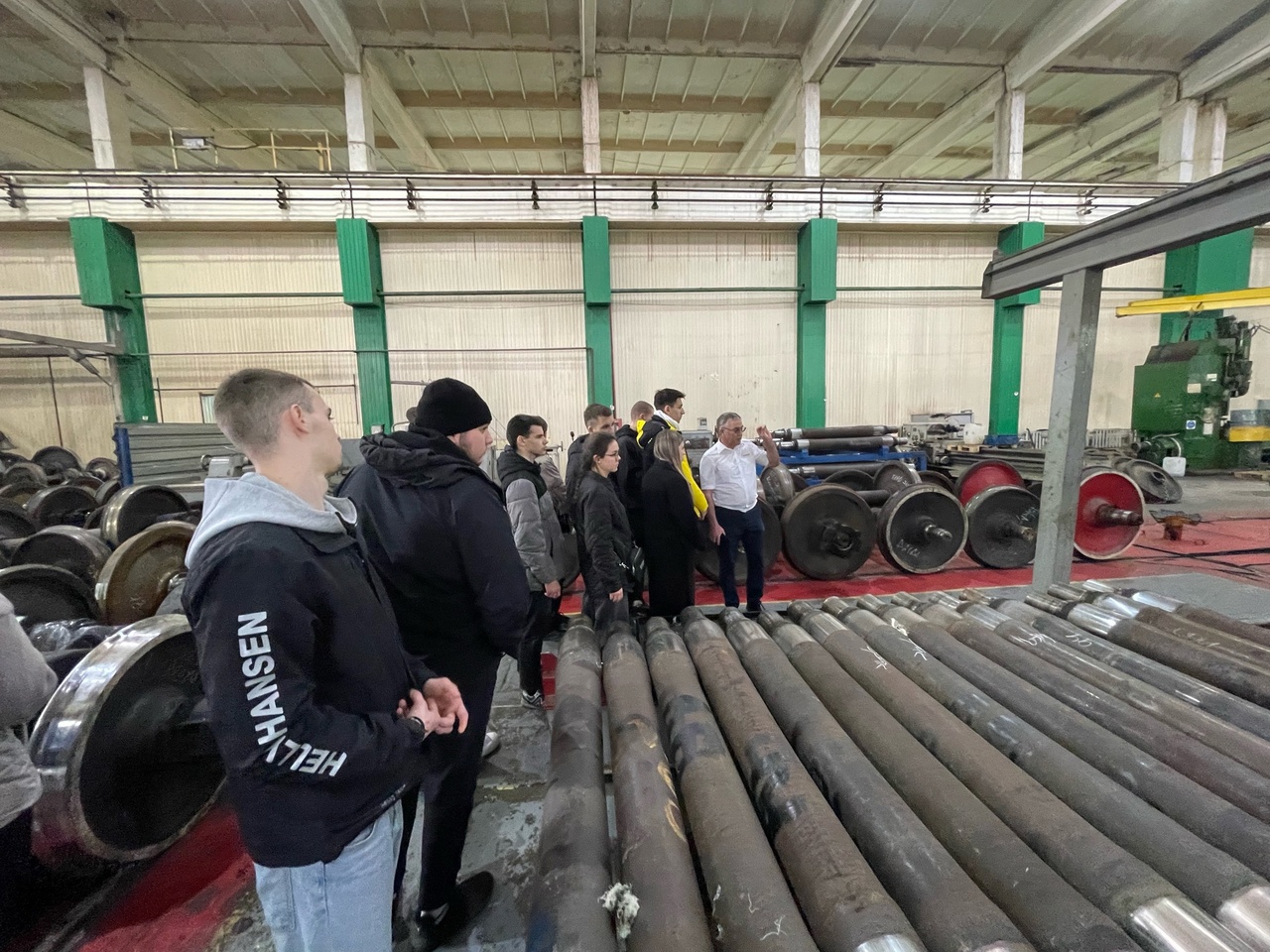 Студенты ознакомились с организацией технического обслуживания и ремонта вагонов в вагонном ремонтном депо Иланск (ВЧДР) и вагонно-колесными мастерскими (ВКР), где более подробно были изучены этапы ремонта автосцепных устройств, начиная со снятия с вагона и разборки, проведение дефектоскопии клина тягового хомута, ремонт тележек грузовых вагонов, боковых рам с наплавкой буксовых проемов, колесных пар с дефектоскопией средней части оси.