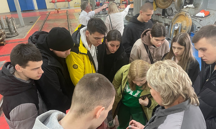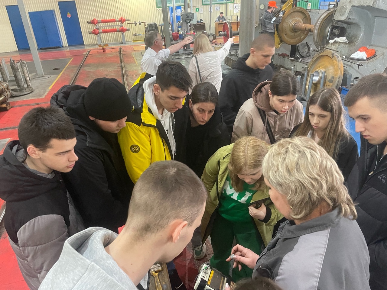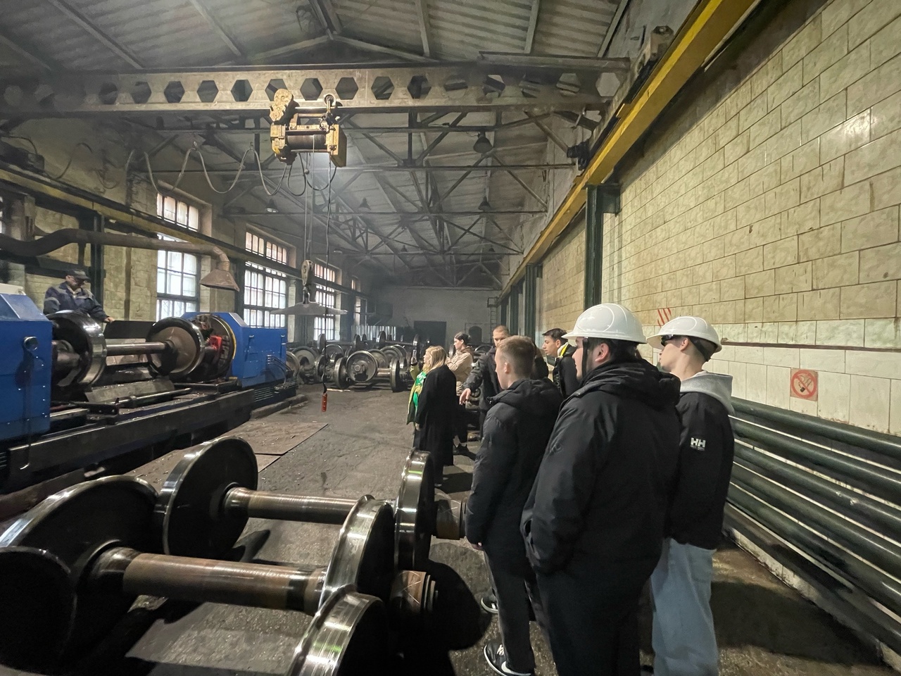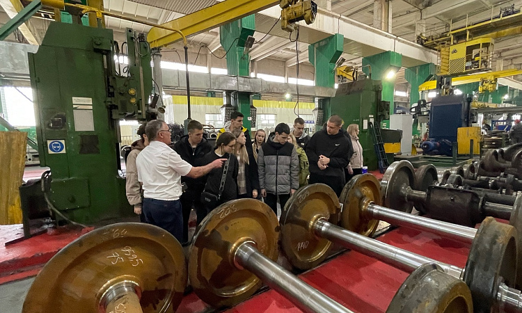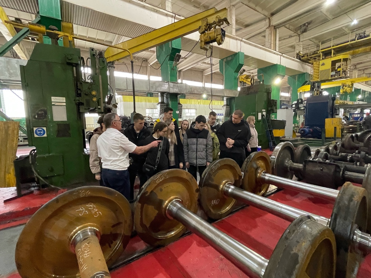 Далее, обучающиеся посетили вагонно-колесные мастерские, где им был наглядно продемонстрирован ремонт колесной пары грузового вагона со сменой элементов.