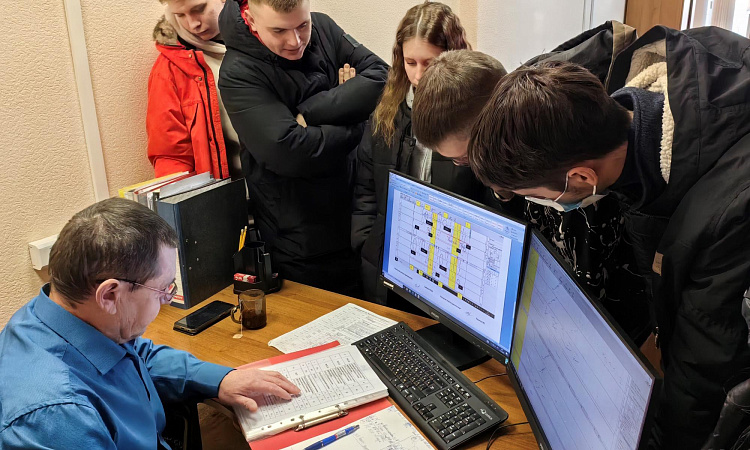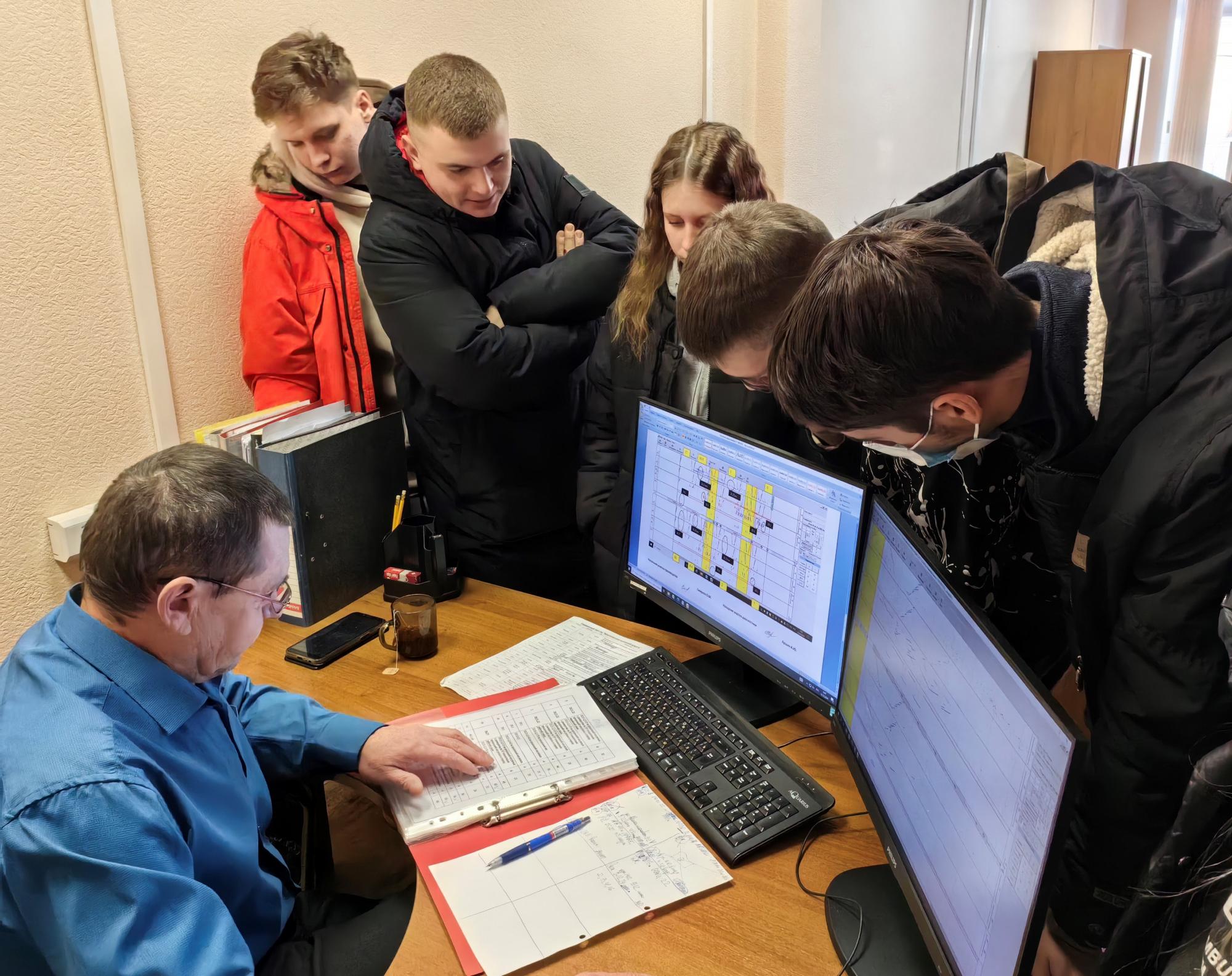 10 декабря в рамках учебной практики при изучении предмета «НКР» (Неразрушающий контроль рельсов) студенты групп С9-21-1 и С9-21-2 КТЖТ КрИЖТ под руководством преподавателя Максима Михайлова посетили Региональный центр диагностики и мониторинга устройств инфраструктуры (РЦДМ).