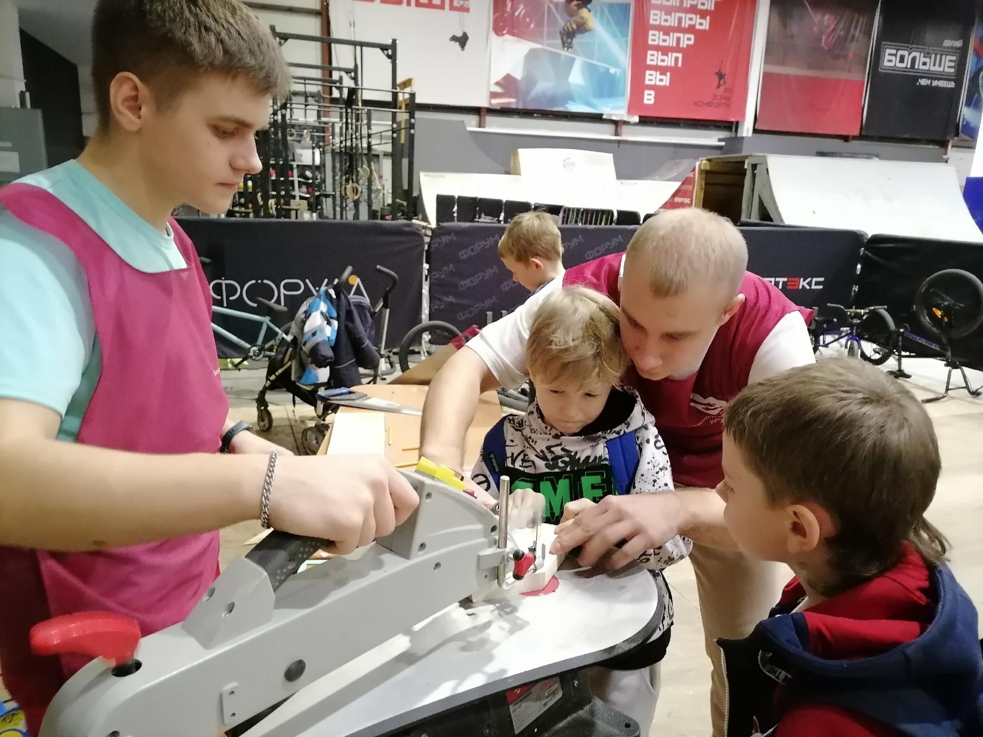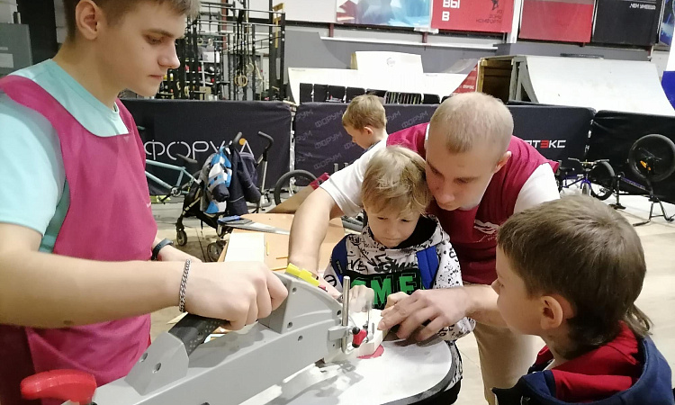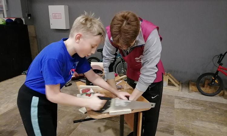 Волонтеры КрИЖТ уже 3 года принимают участие в городском проекте «Добрый мастер». Проект направлен на сопровождение детей с ментальной инвалидностью (аутизмом) в столярной мастерской.