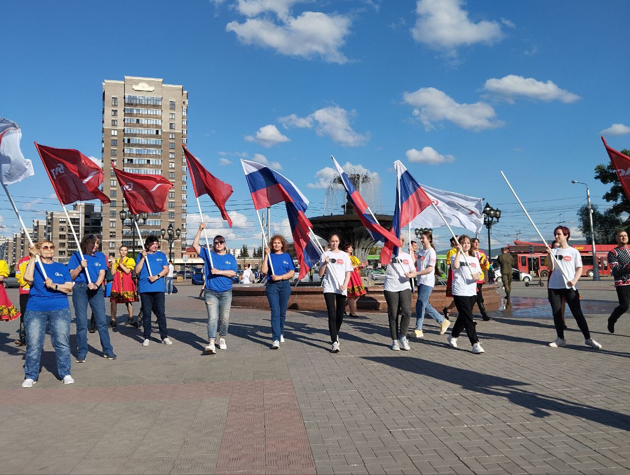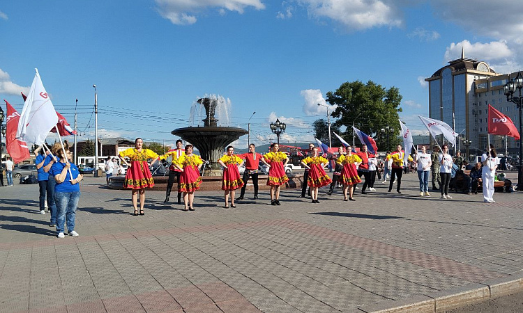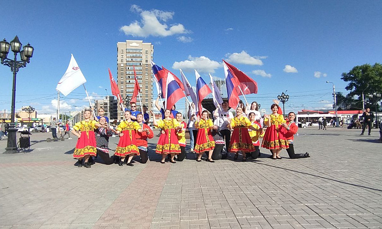 11 июня 2024 года студенты КрИЖТ ИрГУПС совместно с сотрудниками и ветеранами КрасЖД приняли участие во флешмобе, посвященном Дню России.