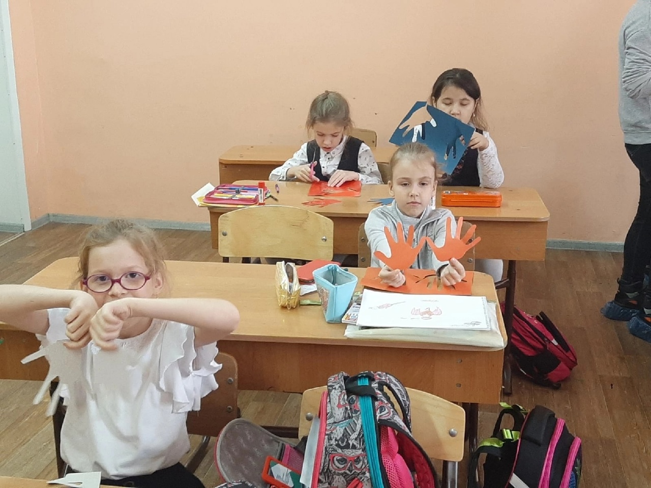 Учащиеся не только сделали открытки, но и весело провели время со студентами, танцуя под веселые песни и играя в различные игры.