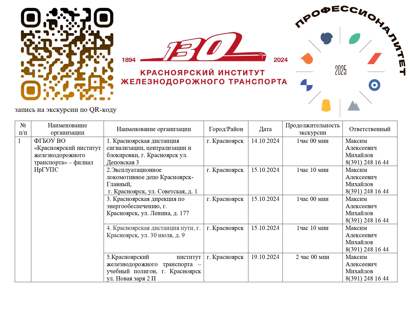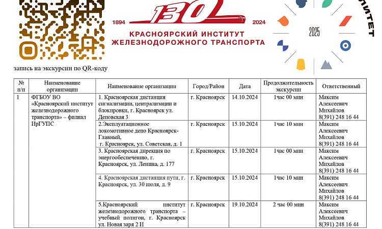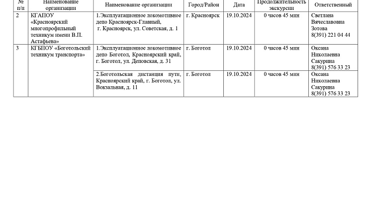 График посещения предприятий по кластеру "Железнодорожник Енисейской Сибири"