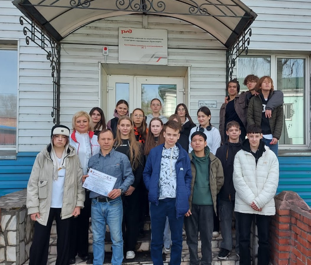 Данная экскурсия была проведена в целях популяризации Федерального проекта «Профессионалитет», подготовки к Единому дню открытых дверей 12 апреля и по приглашению руководства железнодорожного предприятия – Красноярской дистанции электроснабжения.