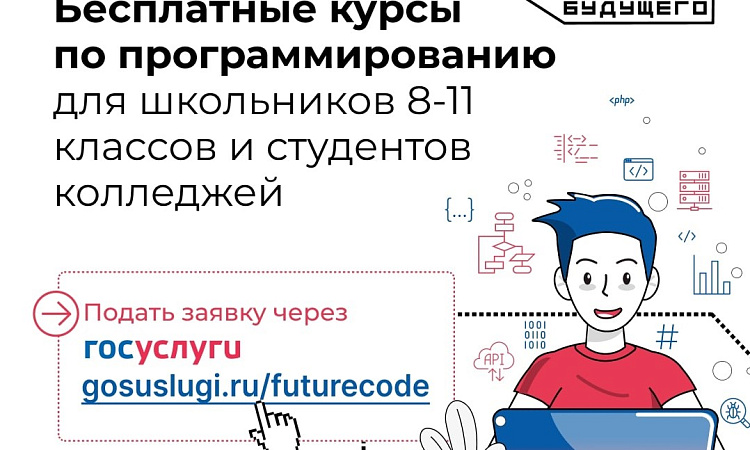 Российские школьники 8-11 классов и студенты колледжей могут бесплатно выучить языки программирования в рамках проекта «Код будущего». Приём заявок на 2023-2024 учебный год стартовал на Госуслугах