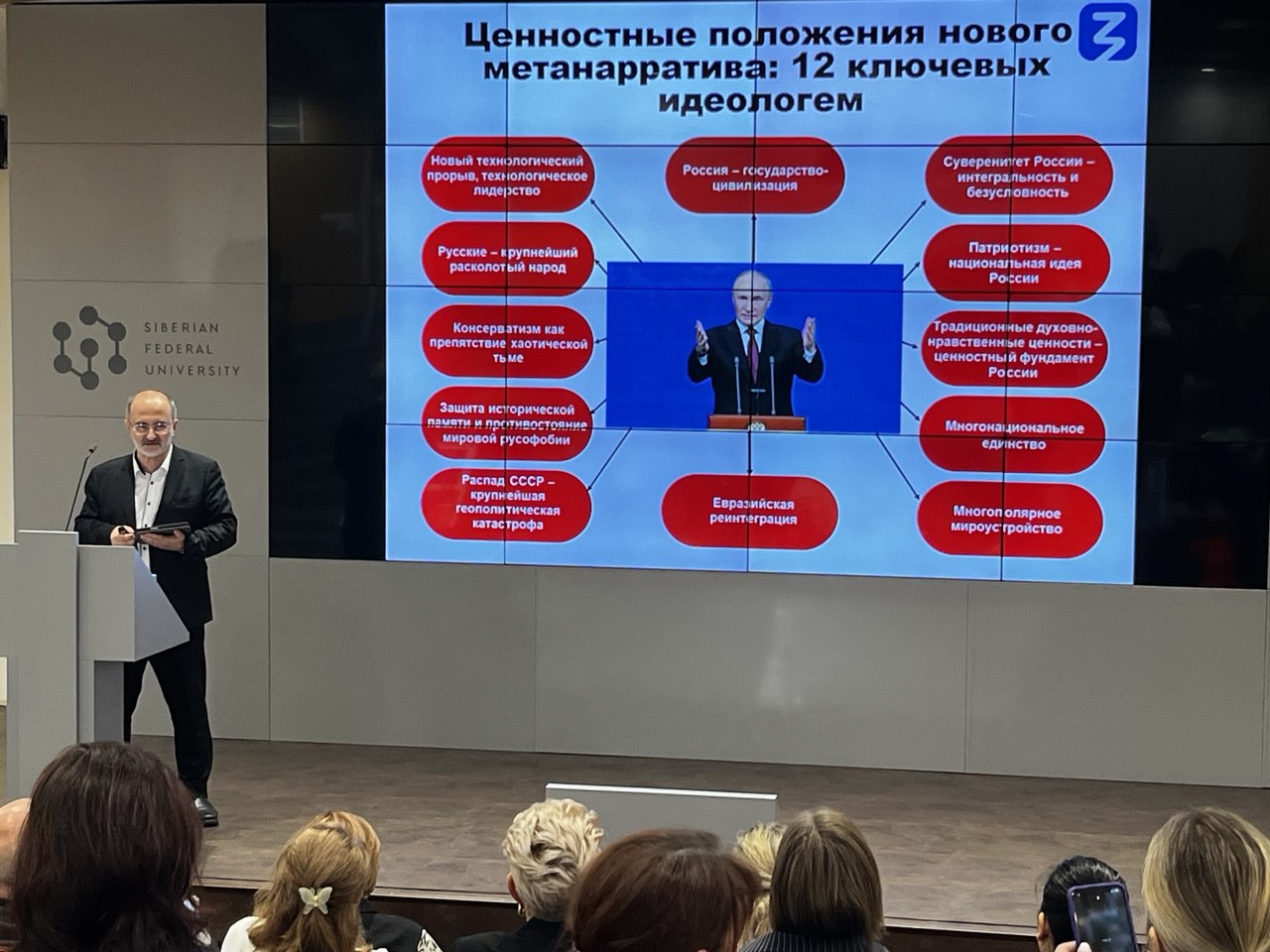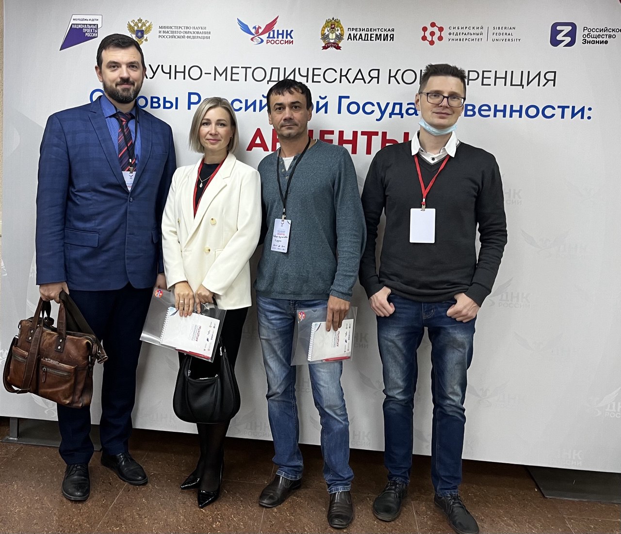 18-19 сентября представители нашего института: Данилова А.С., Колмаков В.О., Галиахметов Р.Н., Захарова Е.Н., Белых И.Н. – приняли участие в масштабной окружной конференции по курсу «Основы российской государственности» в СФУ!