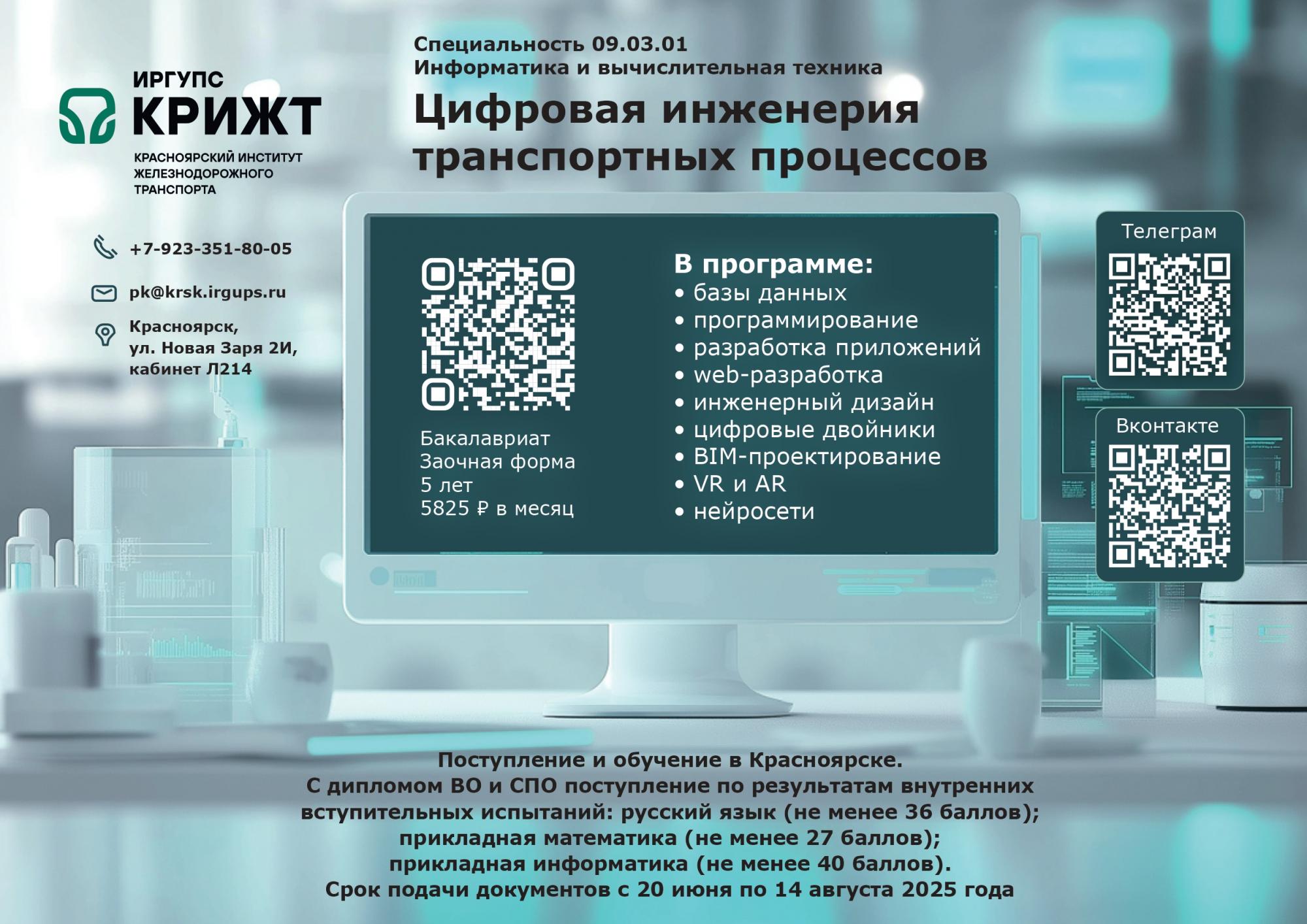Мы ждем тебя на 09.03.01 - Цифровую инженерию транспортных процессов!