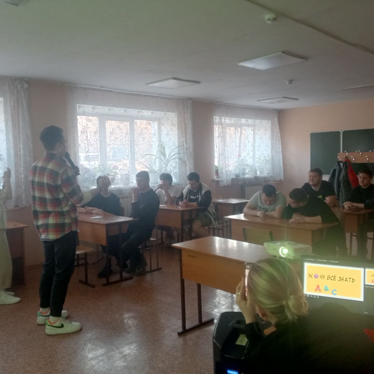 Мы решили, совместно с МЦ «Зеркало», что квиз — интеллектуально-развлекательная игра на проверку знаний во всех сферах жизни — идеально подходит для того, чтобы проверить свои знания и посоревноваться друг с другом. Поэтому 1 апреля 2025 года в общежитии №1 КрИЖТ ИрГУПС прошла игра «Хочу всё знать!».