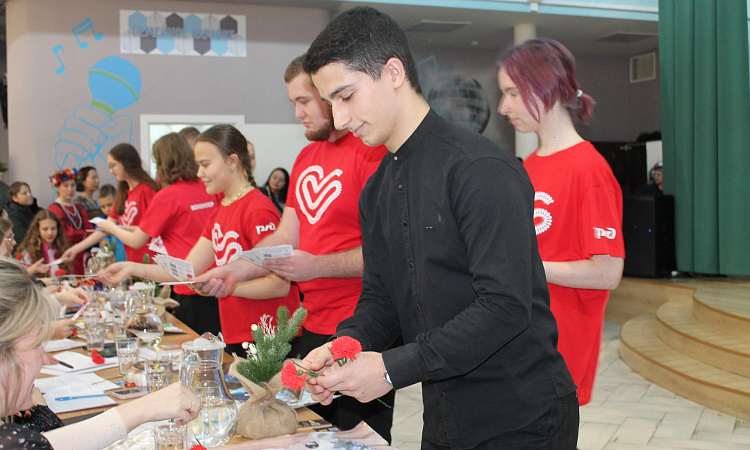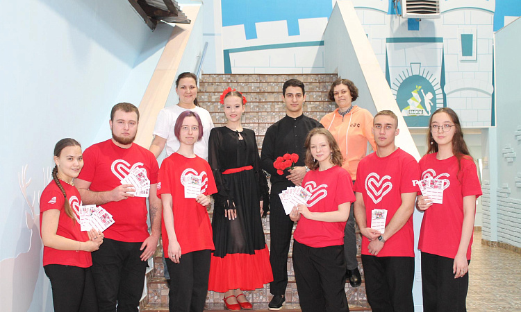 Студенты центра КрИЖТ «МЫ РЯДОМ!» поучаствовали в творческом номере Дарьи и раздали информационные листы корпоративного волонтёрства РЖД.