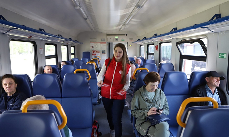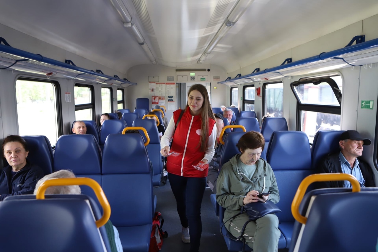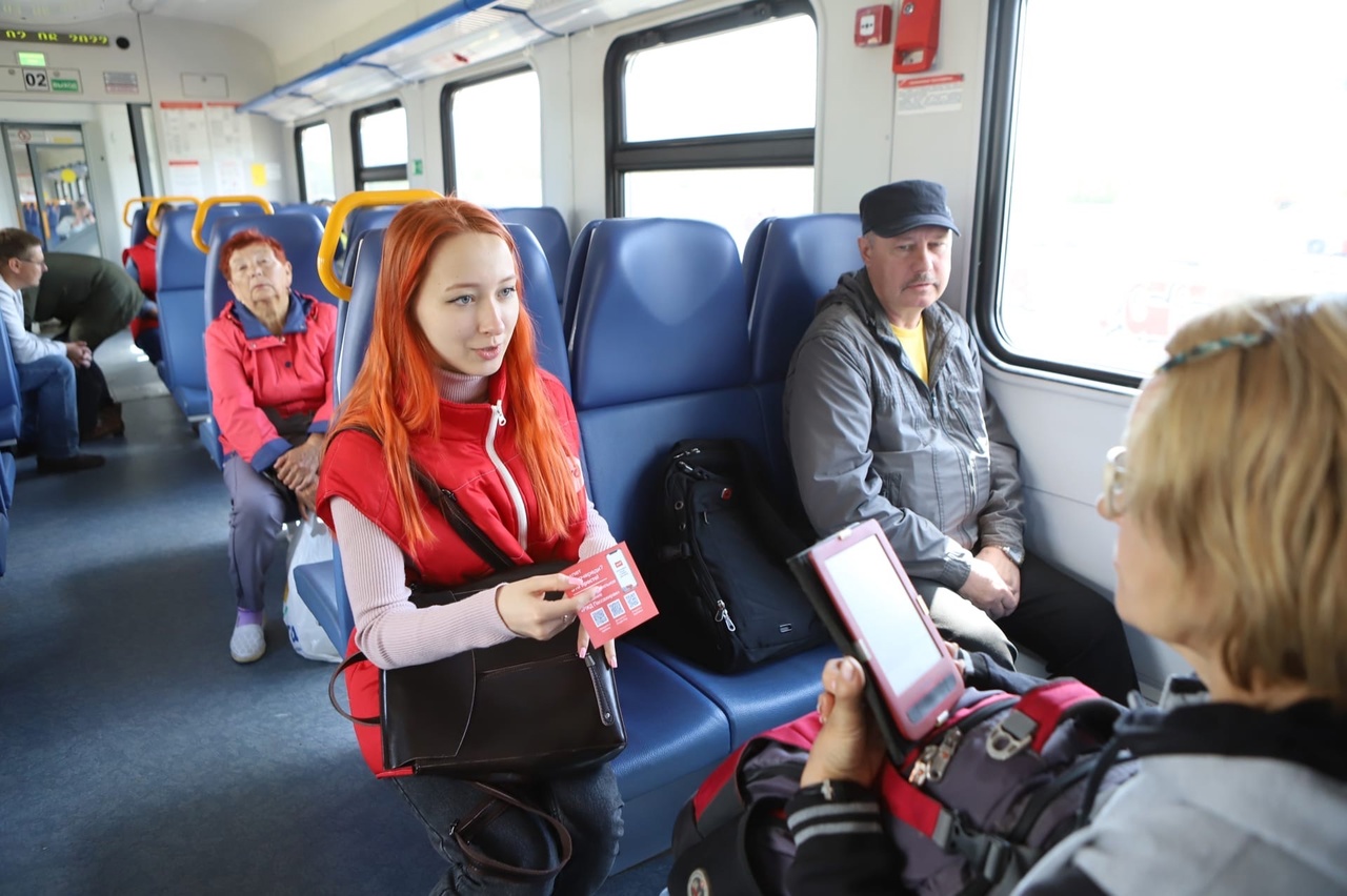 Волонтеры КрИЖТ совместно с компанией «Краспригород» 02 июня 2022 года провели мероприятие по продвижению среди пассажиров пригородных электропоездов мобильного приложения «РЖД пассажирам» для онлайн-оформления проездных документов.