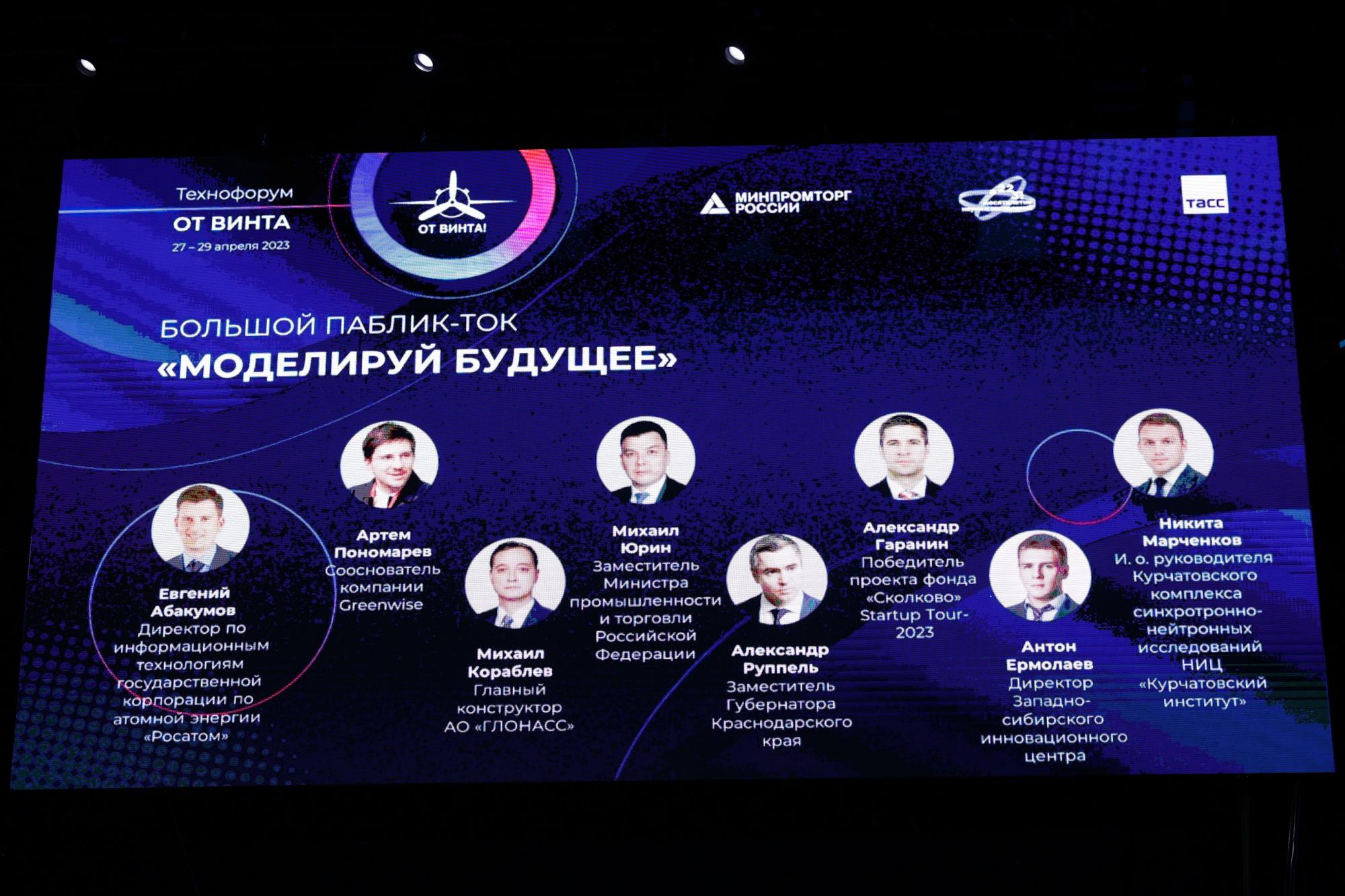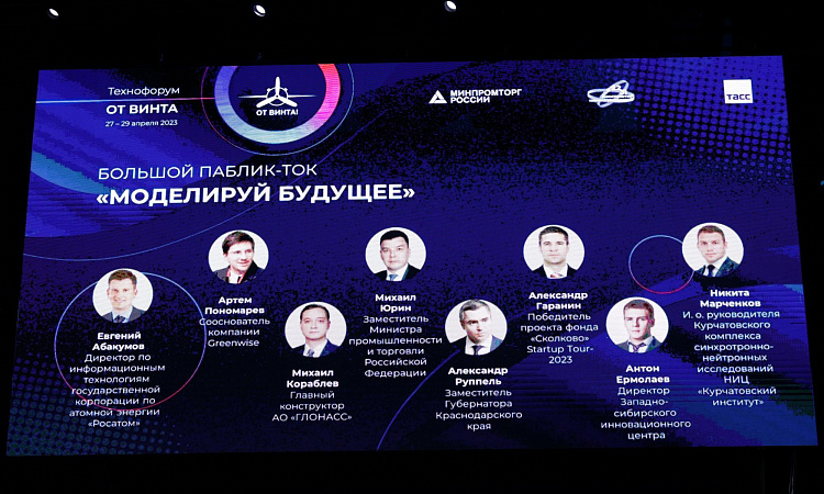 Открывал масштабное мероприятие заместитель Министра промышленности и торговли Российской Федерации Михаил Юрин. Он поделился своим видением приоритетных задач, стоящих перед наукой и промышленностью России в настоящее время. В рамках экспертной дискуссии выступили заместитель губернатора Краснодарского края Александр Руппель, директор по информационным технологиям государственной корпорации по атомной энергии «Росатом» Евгений Абакумов, главный конструктор АО «ГЛОНАСС» Михаил Кораблёв; председатель координационного совета по делам молодёжи в научной и образовательной сферах Совета при Президенте Российской Федерации по науке и образованию, и. о. руководителя Курчатовского комплекса синхротронно-нейтронных исследований НИЦ «Курчатовский институт» Никита Марченков; сооснователь компании Greenwise; глава Ассоциации производителей альтернативных пищевых продуктов Артём Пономарев; победитель проекта фонда «Сколково» Startup Tour-2023 Александр Гаранин.