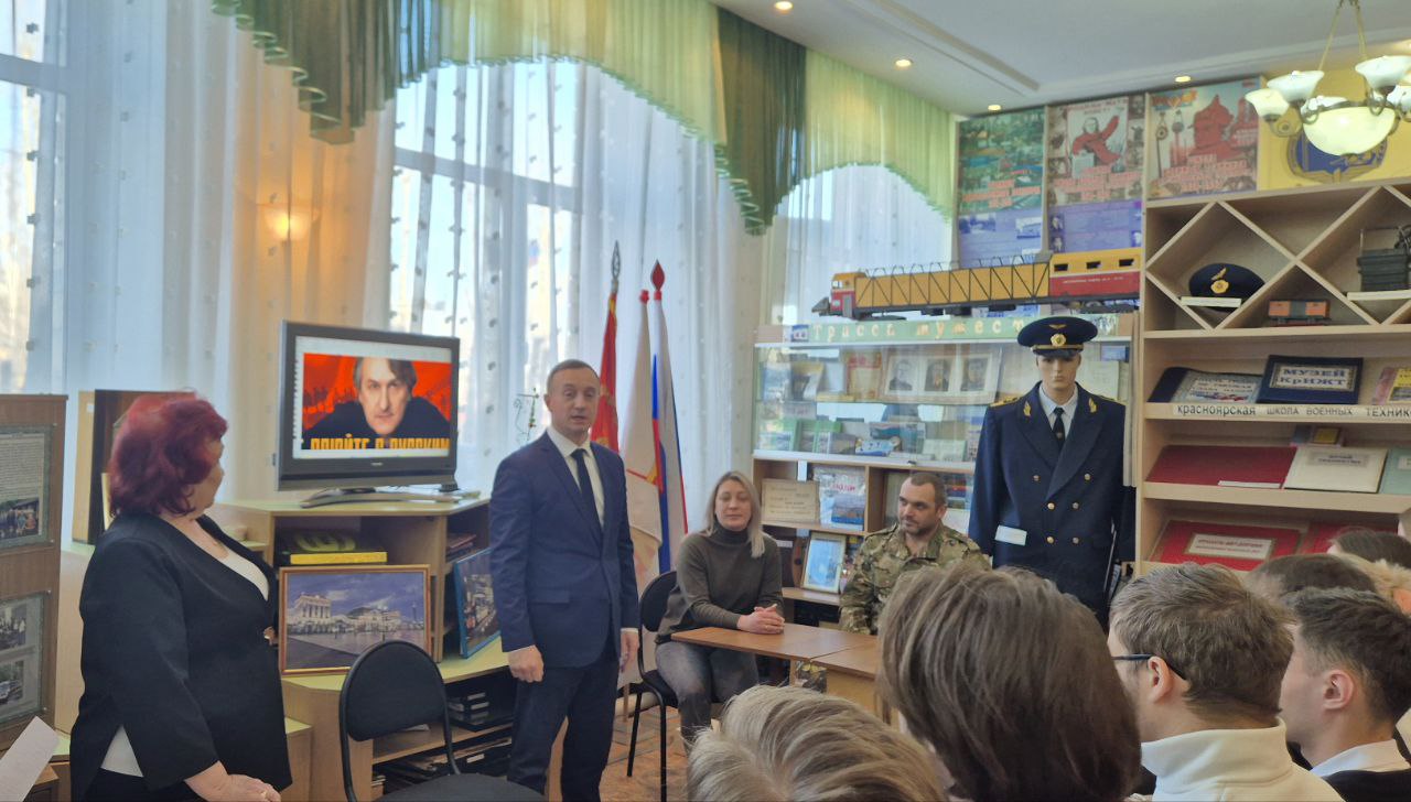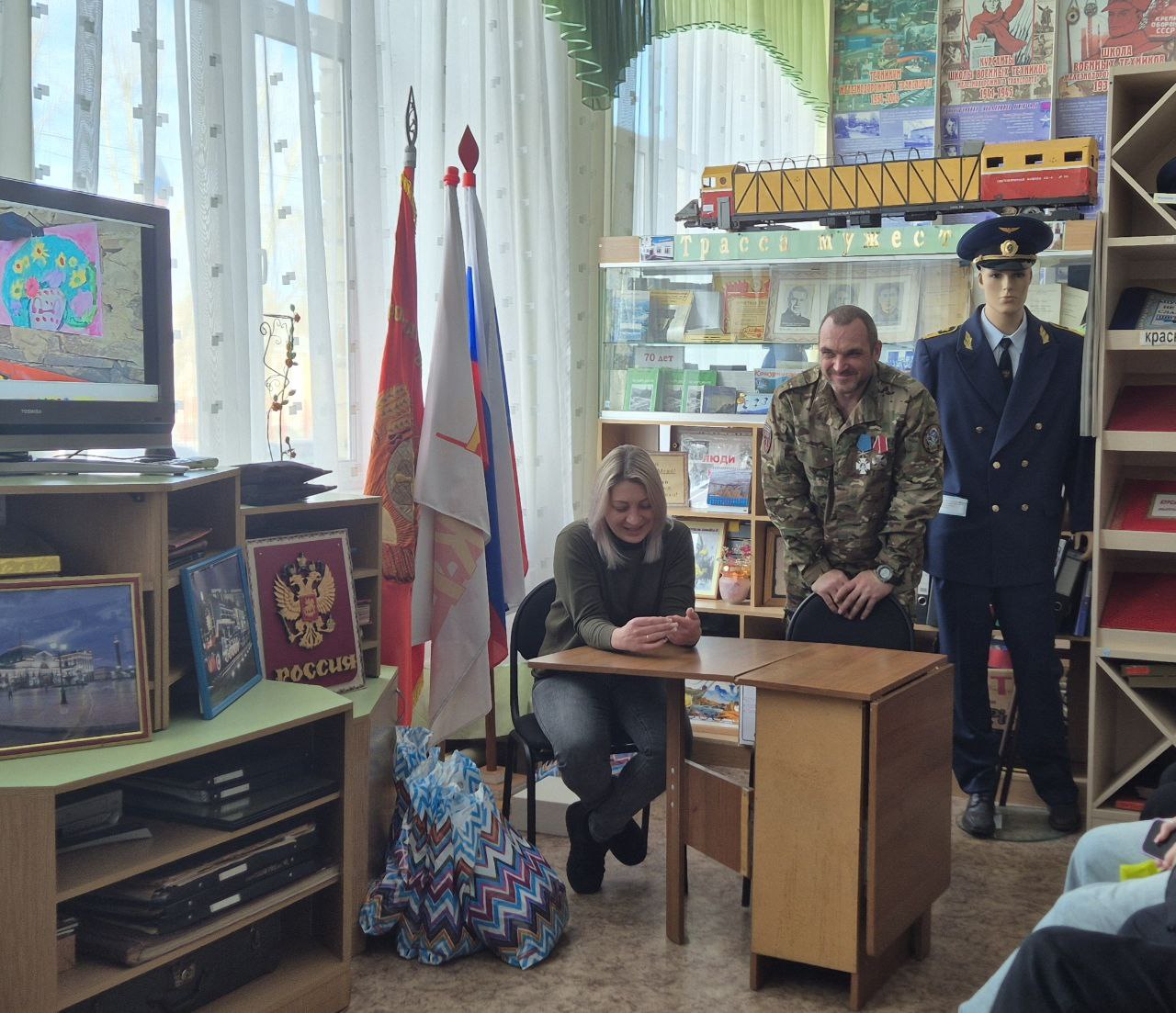 В честь этого праздника 17 февраля 2026 года в экспозиционно-выставочном кабинете КрИЖТ ИрГУПС была организована встреча студентов с героями и защитниками нашего времени, а именно с волонтером Екатериной П., инженером Красноярской железной дороги, которая постоянно ездит в зону СВО с гуманитарной помощью, и участником СВО с позывным «Аргун».