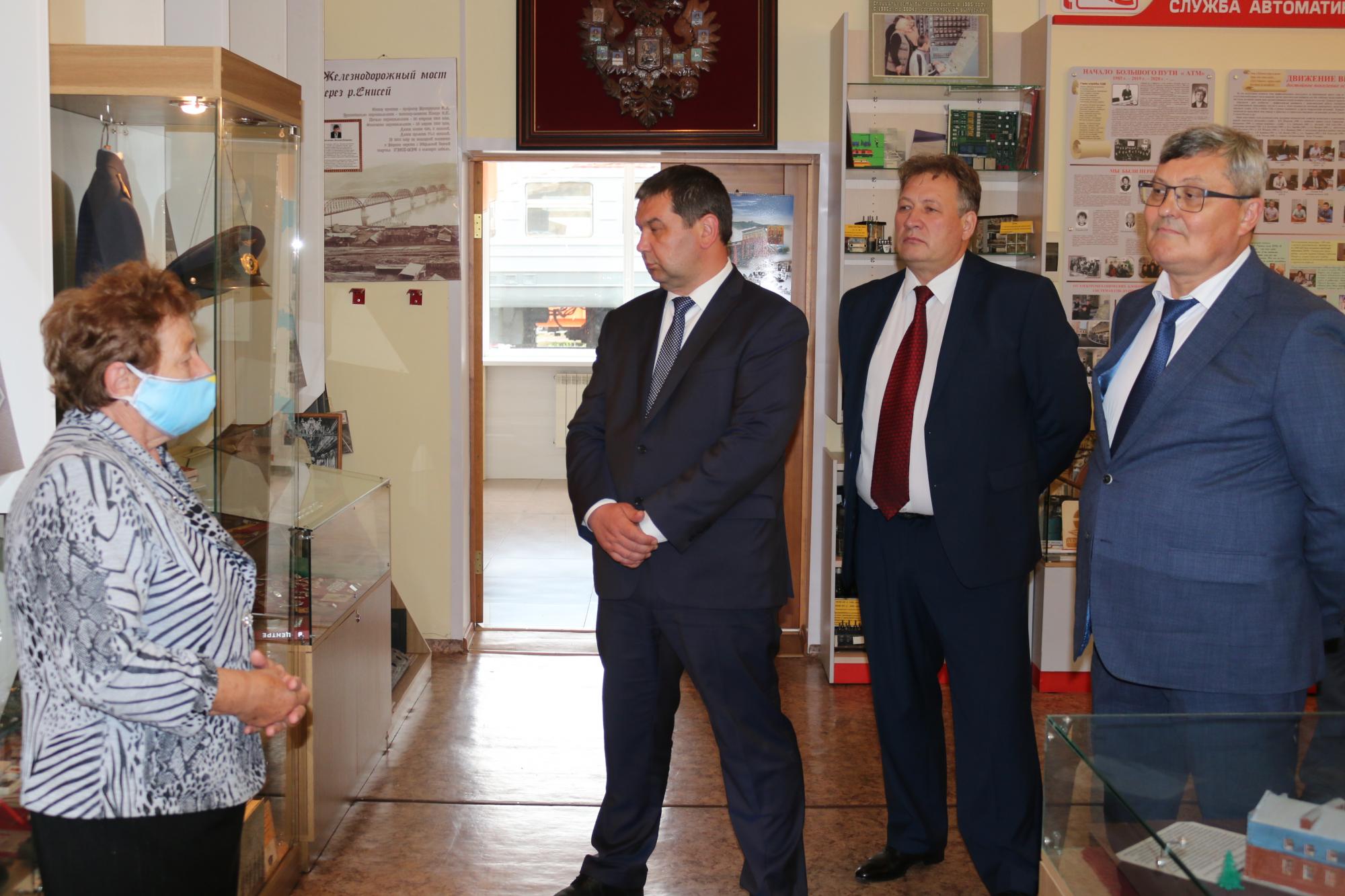 В рамках рабочего визита 28 июля начальник Красноярской железной дороги Туманин Алексей Сергеевич посетил Красноярский институт железнодорожного транспорта. Он осмотрел лабораторную базу, библиотеку, тренажерные и другие учебные аудитории, прошелся по «Аллее Славы» и актовому залу, где ему рассказали о внеучебной работе, проводимой со студентами, о спортивных секциях и творческих коллективах института, а при посещении музея Института, ознакомился с главными экспонатами экспозиции. В процессе встречи Алексей Сергеевич пообщался с секретарями отборочных комиссий высшего и среднего профессионального образования, обсудил вопросы сотрудничества и поинтересовался проблемами института.