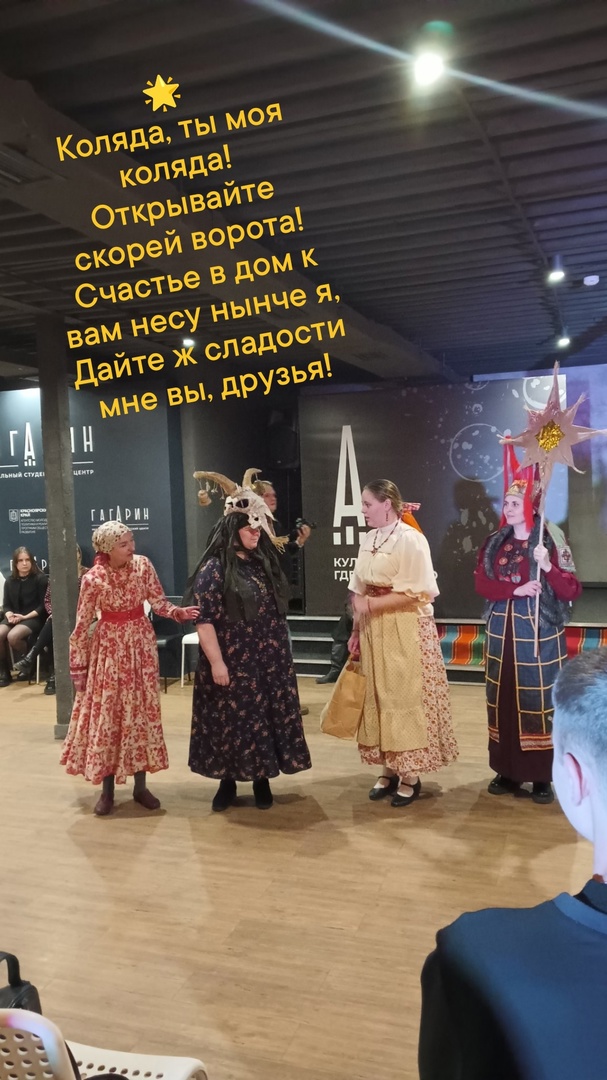 12 января в студенческом центре "Гагарин", студенты общежития КрИЖТ ИрГУПС приняли участие в молодёжной этно-вечёрке, в канун отдания празднества Рождества Христова. Этот день в народе еще называют "Васильев вечер" по имени святителя Василия Великого или "Щедрый вечер" по строчке колядки ""Щедрый тебе вечер, ласковый хозяин..." Праздник получился не просто просветительский , рассказывающий о событиях мировой истории, которые так почитали наши предки - о Рождестве Христовом , но и радостный и веселый, по-домашнему тёплый.