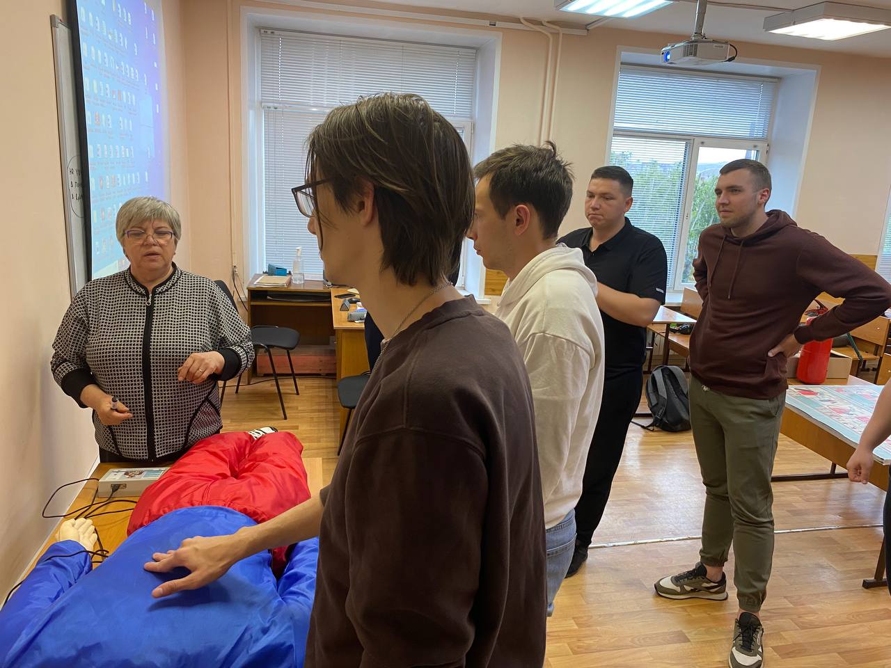 На факультете «Заочное обучение и дополнительное образование» начался этап практической подготовки участников Красноярского отделения Российских студенческих отрядов по программе обучения «Электромонтер контактной сети» в рамках реализации гранта на обучение по основным программам профессионального обучения участников студенческих отрядов по профессиям рабочих и должностям служащих, необходимых для осуществления трудовой деятельности в составе таких отрядов. Под руководством преподавателя Рудковской Людмилы ребята отрабатывают навыки оказания первой помощи пострадавшим.