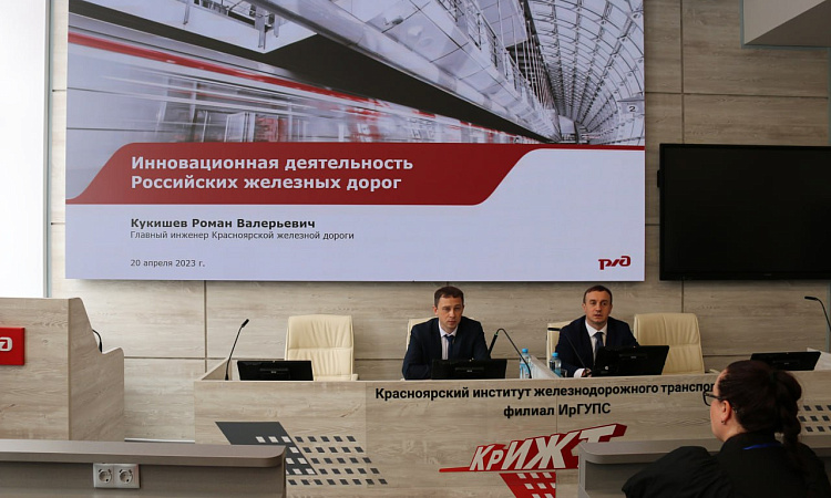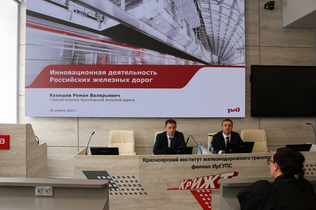 20 апреля на площадке Красноярского института железнодорожного транспорта - филиале ФГБОУ ВО "Иркутский государственный университет путей сообщения" прошла открытая лекция "Инновационная деятельность Российских железных дорог. Автор и докладчик - главный инженер Красноярской железной дороги - Кукишев Роман Валерьевич. На мероприятии также присутствовали профильные преподаватели, а также студенты 4 и 5 курсов специальности "Строительство железных дорог". Всего более 80 человек.
