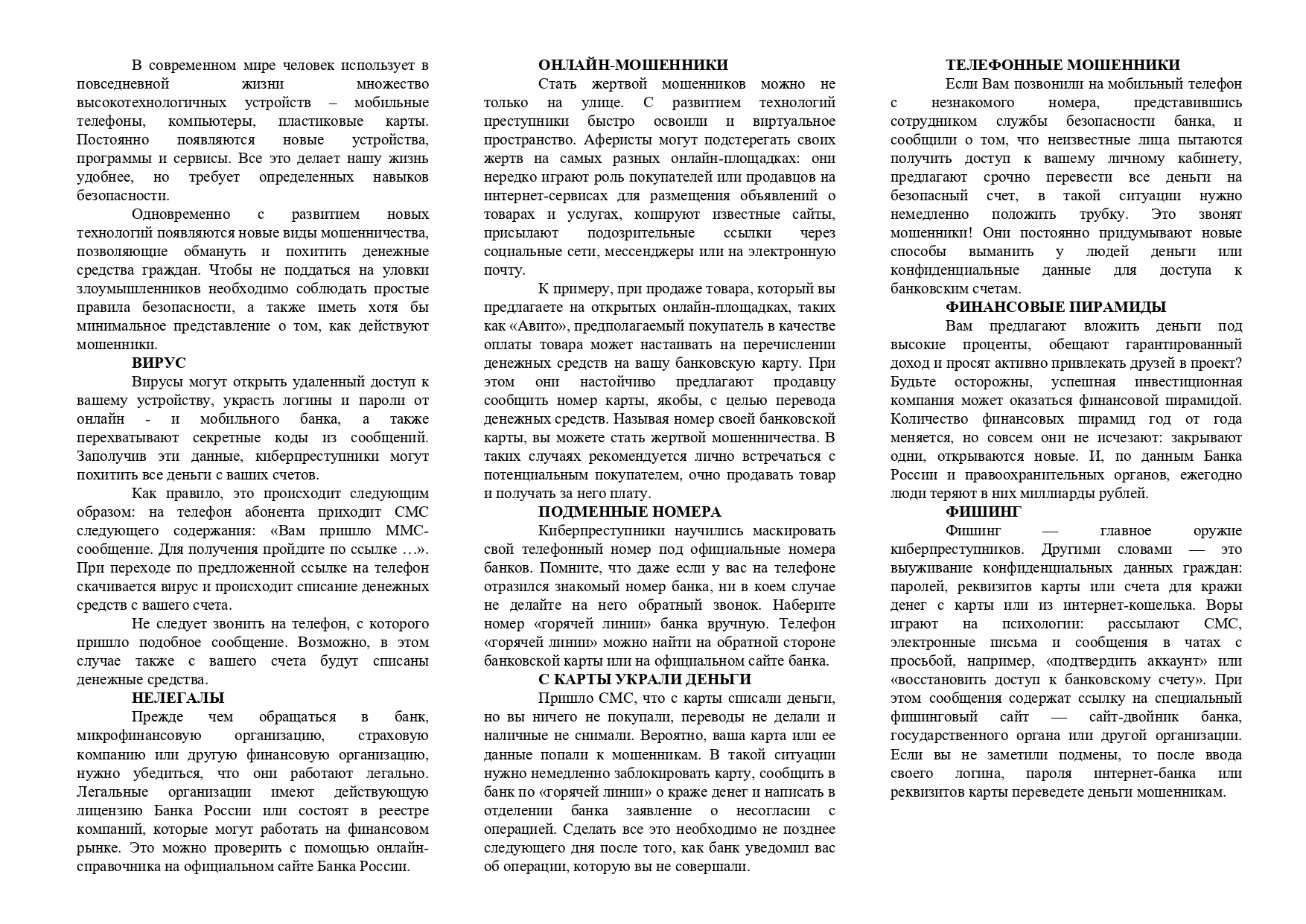 Памятка "Финансовая грамотность"
