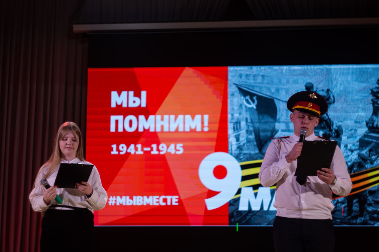 После тожественного традиционного митинга, всех присутствующих пригласили в зал на концерт, где вниманию зрителей была предложена музыкально-поэтическая композиция «День Победы». Участники концерта, творческая команда института и техникума, вложили в этот спектакль свои самые сокровенные пожелания о мирном будущем нашей Родины. А в ответ получили благодарную поддержку от зрителей, находящихся в зале, громкими аплодисментами.