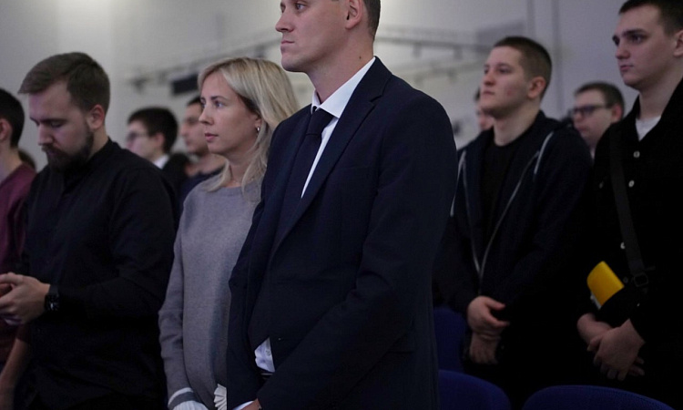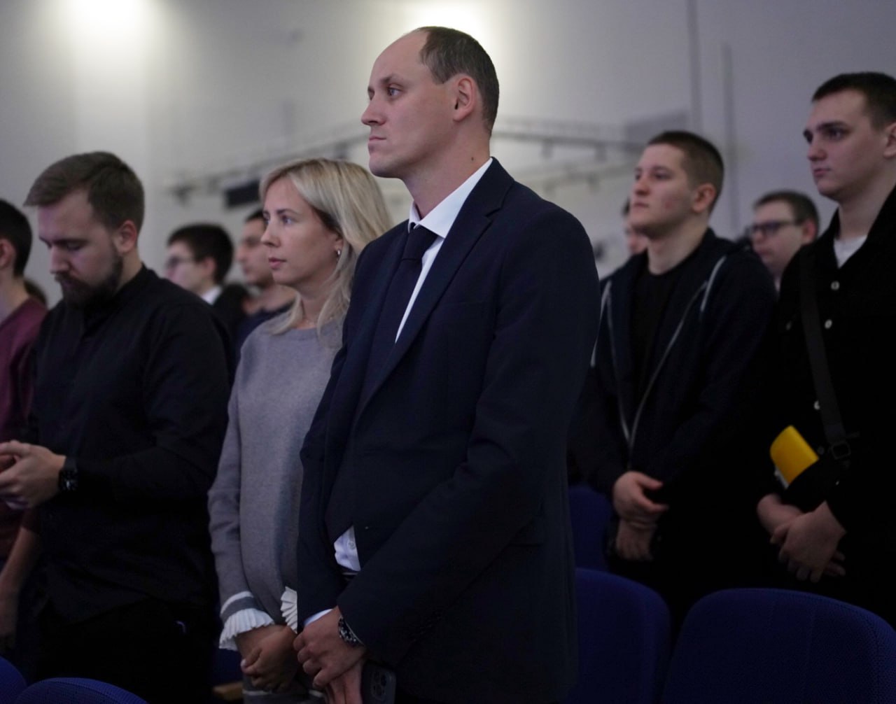 Со сцены актового зала прозвучало поздравление директора института Евгения Евгеньевича Савченко. В рамках мероприятия он вручил заслуженные награды мужчинам — сотрудникам института, отметив их профессиональные достижения и вклад в развитие образовательного учреждения.