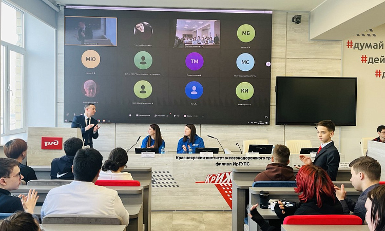 На мероприятии в очном формате присутствовал директор КрИЖТ Евгений Савченко и ещё более ста обучающихся средних образовательных школ и техникумов г. Красноярска.
