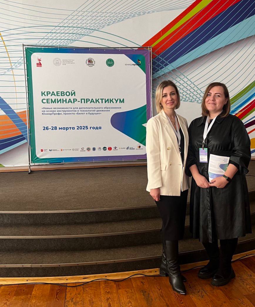 26-28 марта старшие преподаватели КрИЖТ ИрГУПС кафедр «Управление персоналом» и «Эксплуатация железных дорог» Екатерина Захарова и Валентина Пискунова участвовали в краевом семинаре-практикуме «Новые возможности для дополнительного образования на основе инструментов и технологий движения ЮниорПрофи проекта «Билет в будущее».