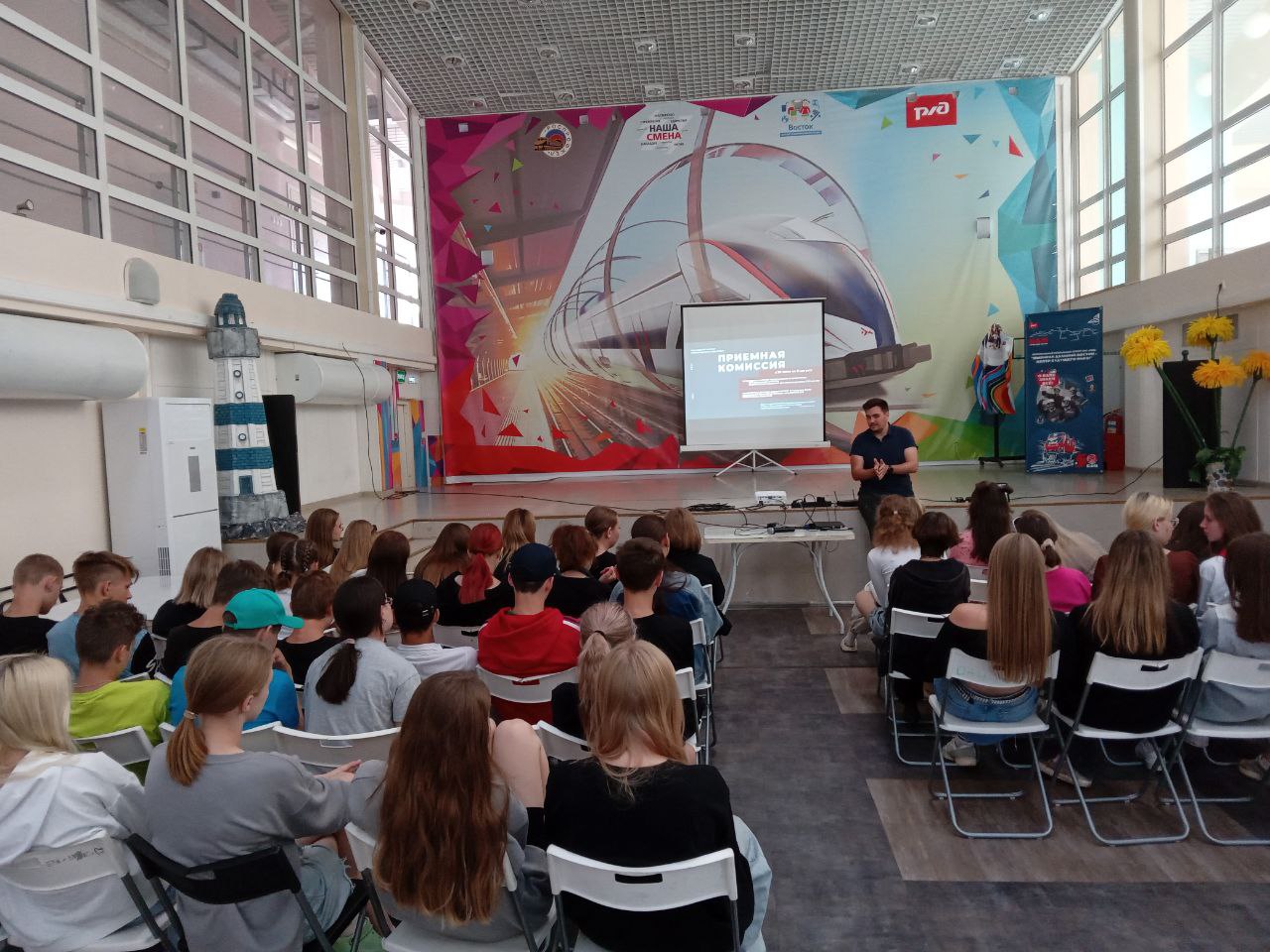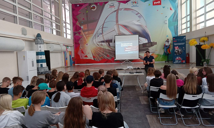 11 июля центр профориентации и развития карьеры выпускников КрИЖТ провел профориентационную лекцию для 70 отдыхающих детей в детском оздоровительном лагере "Восток", г. Красноярск. О железнодорожных специальностях и интересной студенческой жизни будущим железнодорожникам рассказали заместитель директора по развитию и связям с производством Алексей Орленко и специалист по связям с общественностью Роман Нечаев.