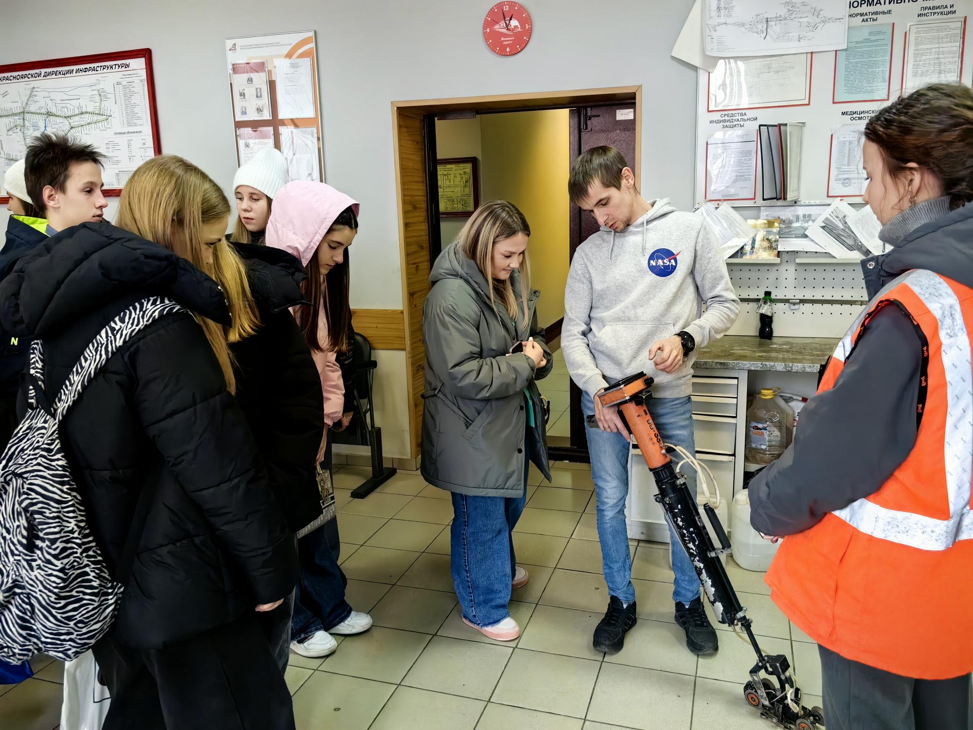 15 октября согласно графику экскурсий на предприятия Красноярской железной дороги - филиала ОАО "РЖД", проводимых в профессиональных образовательных учреждениях образовательно-производственного центра "Железнодорожник Енисейской Сибири" в рамках Единого дня открытых дверей федерального проекта "Профессионалитет" под руководством преподавателя КрИЖТ Максима Михайлова прошла экскурсия в Красноярской дистанции пути, на которой учащиеся 8-11 классов СОШ № 82 узнали о профессиях "оператор дефектоскопной тележки", "сигналист", "техник" и других.