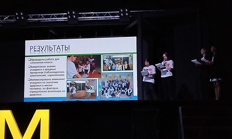 Презентовали наш проект 2 участника команды КрИЖТ. Сначала девочки представили презентацию, а затем показали отчетный ролик, после ответили на все вопросы почётных гостей мероприятия. Проект в форме квеста «Вперед по дороге здоровья» был реализован на базе МАОУ СШ № 21 г. Красноярск для учеников 2-4 классов.