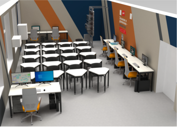 Монтаж современного высокотехнического оборудования выполняется на базе учебной аудитории КрИЖТ А-409. Помещение отремонтировано и брендировано согласно техническому заданию ОАО «РЖД».