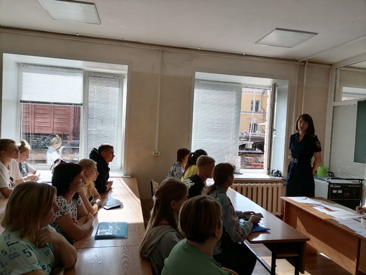 29 августа в Красноярском институте железнодорожного транспорта в рамках профилактической акции «Безопасный транспорт» проводилась профилактическая беседа на тему: «Административная ответственность за правонарушения, в том числе на объектах железнодорожного транспорта; Правила поведения в общественных местах». Ведущей беседы выступила инспектор ОпДН Сибирского ЛУ МВД России, старший лейтенант полиции Мария Аверьянова. Слушателями стали несовершеннолетние студенты первого курса, заселяющиеся в общежития КрИЖТ № 1 и № 2. Для родителей наших первокурсников также было проведено родительское собрание на смежную тему, а именно: «Профилактика и ответственность несовершеннолетних за правонарушения в общественных местах, в том числе на объектах железнодорожного транспорта».