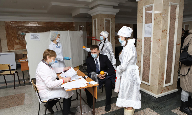 Чтобы поддержать всех, кто уже позаботился о своём здоровье, Дед Иммунитет вместе с Внучками-антителами отправился в прививочный пункт вокзала и поздравил вакцинирующихся красноярцев.