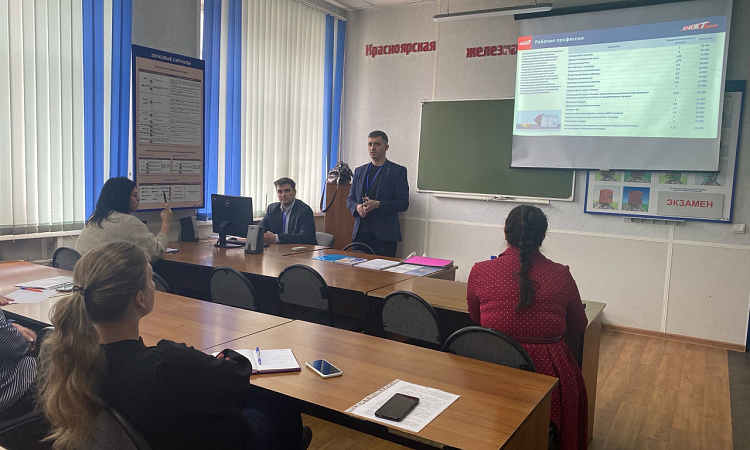 26 мая представители КрИЖТ провели две профориентационные встречи в городе Абакан. Первая встреча проводилась с сотрудниками кадрового блока Абаканского узла КрасЖД, где рассматривались вопросы поступления и обучения на заочную форму, ускоренное обучение по программам высшего образования на базе диплома СПО, возможности получения дополнительного профессионального образования, переподготовки и повышения квалификации в КрИЖТ ИрГУПС, а также возможности образовательного кредита. Вторая встреча проводилась с обучающимися школ Абакана и Минусинска в форме экскурсии по лабораториям с тренажёрами Абаканского филиала Красноярского УЦПК. За время экскурсии гости узнали об условиях и сроках подачи документов для поступления в КрИЖТ ИрГУПС, о преимуществах трудоустройства в ОАО «РЖД» и преимуществах заключения договора о целевом обучении. В составе делегации: заместитель директора КрИЖТ по развитию и связям с производством Алексей Орленко, начальник центра профориентации и развития карьеры выпускников Наталья Фадеева, руководитель дистанционного обучения Евгений Бойков, специалист по связям с общественностью Роман Нечаев и заместитель декана очного обучения Софья Ранюк.