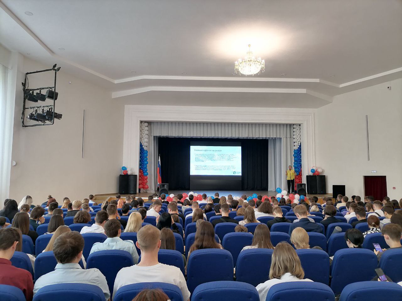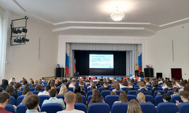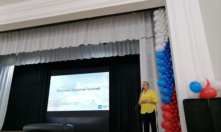 26 мая 2025 года в актовом зале КрИЖТ ИрГУПС начальник отдела коммуникационных и общественных проектов Красноярского краевого Центра общественного здоровья и медицинской профилактики Елена Павловна Замятина провела интерактивную лекцию «Подмена понятий» для студентов СПО (в количестве 465 человек).