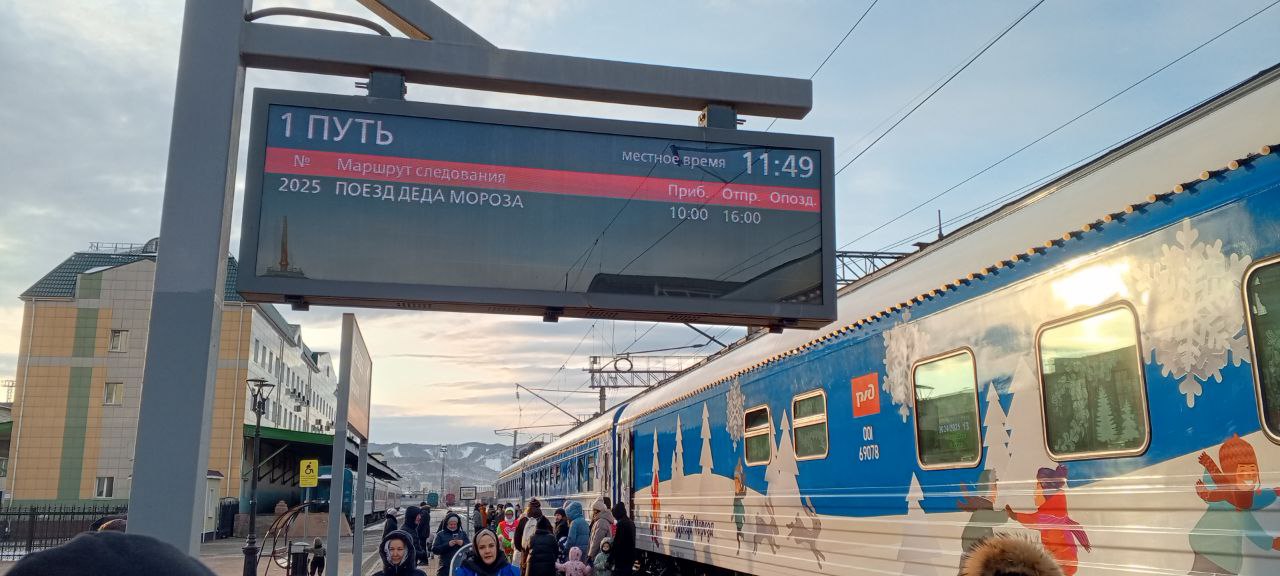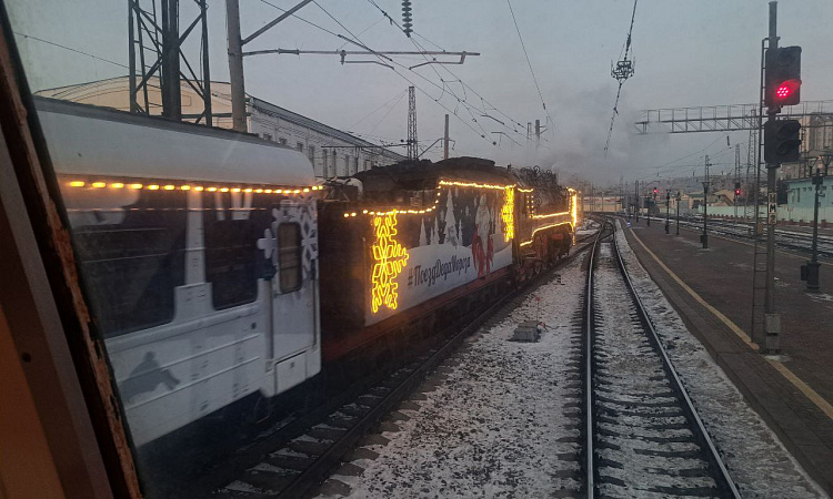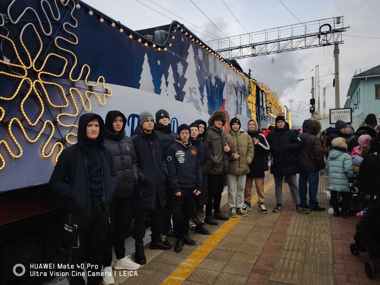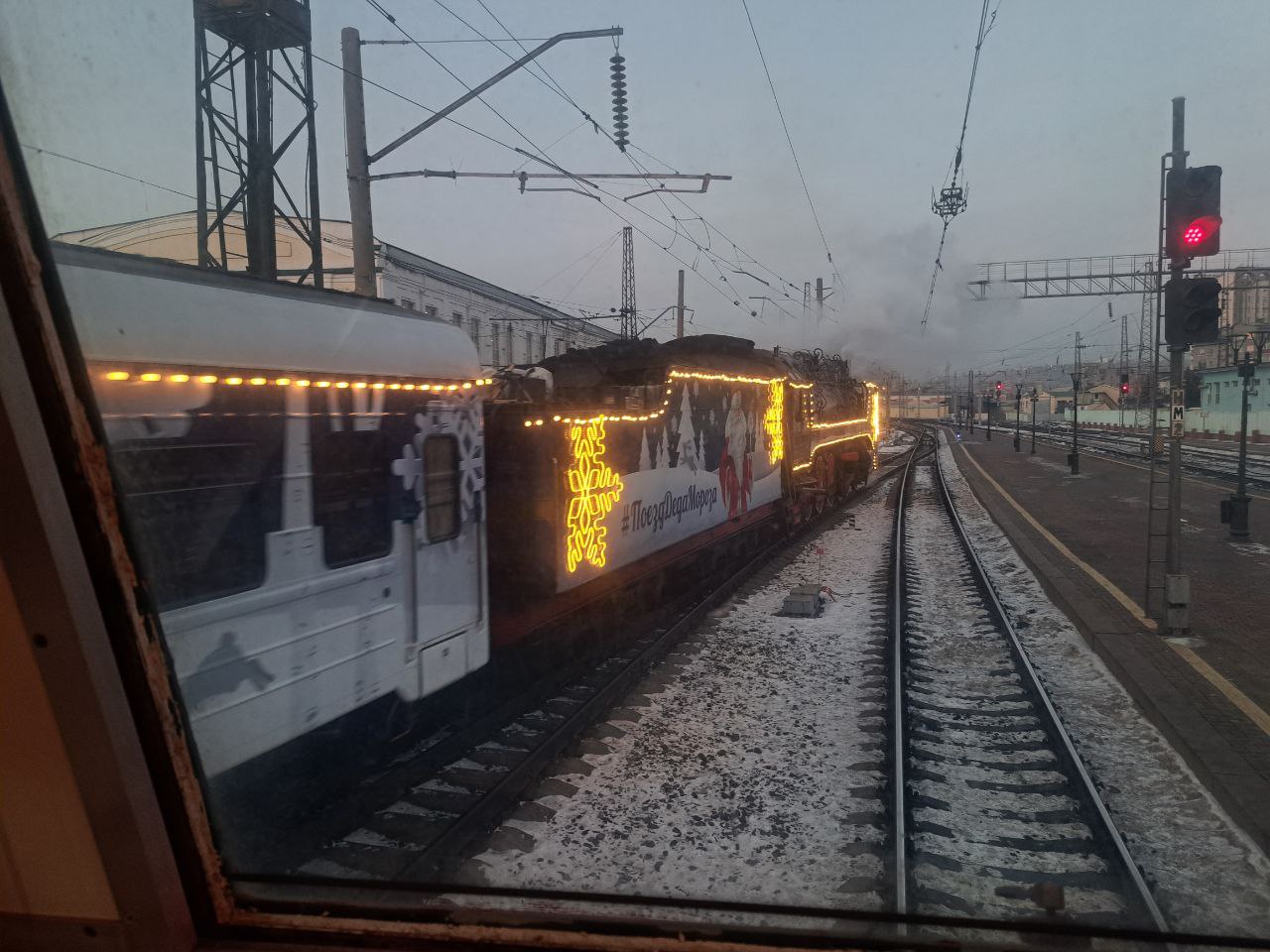 Студенты психологического клуба КрИЖТ "Своя тема" встретили поезд Деда Мороза в Красноярске! Впервые поезд Деда Мороза отправился в предновогодний рейс в 2021 году. Состав сформировали в Великом Устюге Вологодской области. Поезд курсирует с октября по январь по 130 городам России, чтобы устроить массовое празднование Нового года на станциях прибытия.