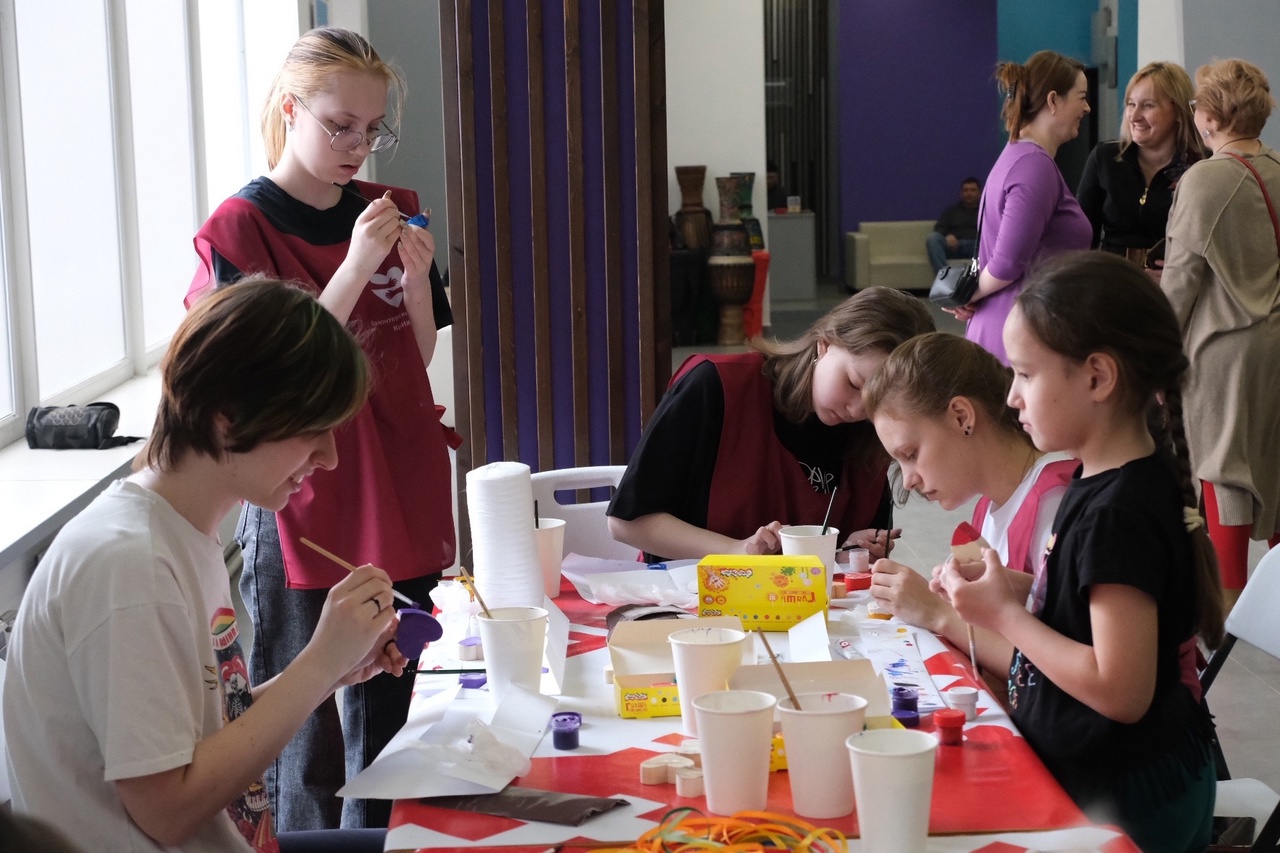 Волонтеры и неравнодушные жители г. Красноярска знакомились с ребятами с расстройством аутистического спектра: играли вместе с ними на африканских барабанах и в гигантский тетрис, собирали бутерброд в свой рост, обнимались с героями мультфильма «Ледниковый период» и раскрашивали деревянные сердечки, которые нам подготовили ребята с аутизмом на своих занятиях. Мы стали зрителями невероятно атмосферного, душевного концерта, участниками которого в том числе стали ребята с РАС.