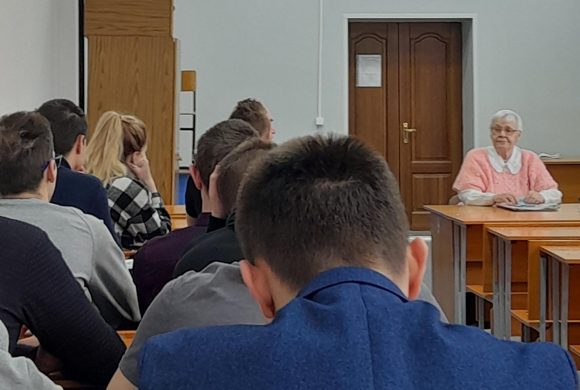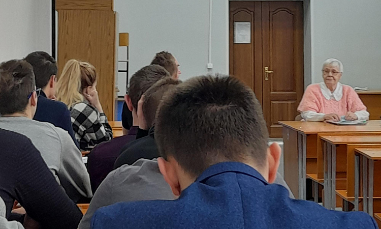 В рамках празднования годовщины победы в Великой отечественной войне кафедра «Строительство железных дорог» проводит цикл встреч студентов с Селиверстовой Изольдой Федоровной, ветераном КрИЖТ, кандидатом физико-математических наук, дочерью героя Советского Союза.
