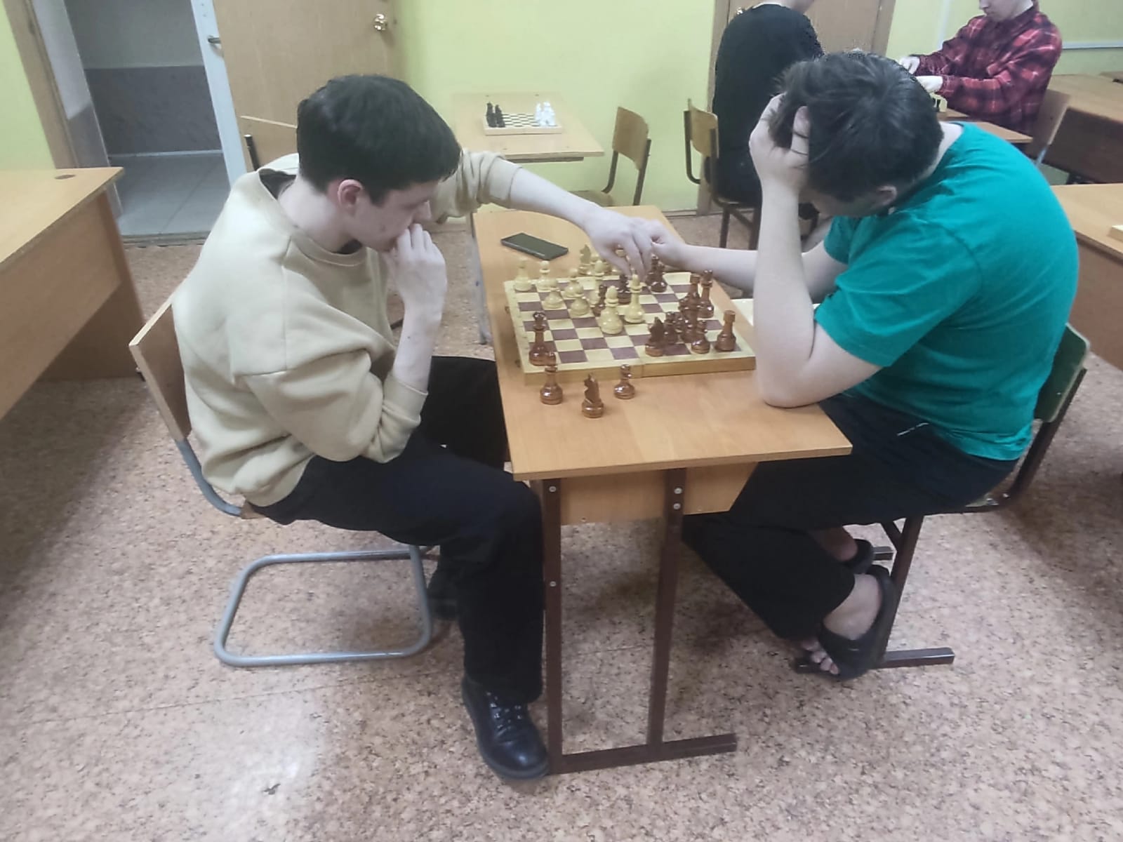 В студенческом общежитии №1 КрИЖТ ИрГУПС 05.03.2023 г. состоялся шахматный турнир для студентов. К участию в турнире были приглашены все желающие студенты, проживающие в общежитии. В шахматных баталиях приняли участие: Юрий Юбухаев, Константин Рыбин, Вадим Викулин, Александр Ольхов, Артем Коптий, Геннадий Суздальцев, Михаил Раздобарин, Михаил Илющенко. Было очень интересно наблюдать за красивыми комбинациями, серьезной напряженной игрой.