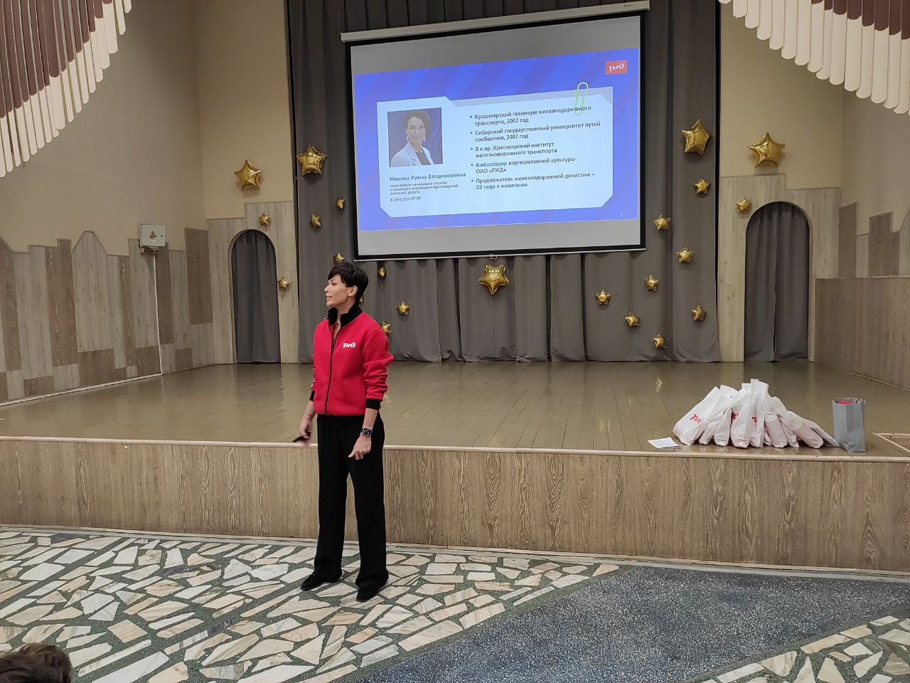 Мероприятие стартовало с презентации условий труда в ОАО "РЖД" заместителем начальника службы управления персоналом Красноярской железной дороги Ириной Иошиной, также Ирина Владимировна детально рассказала о преимуществах целевого обучения.