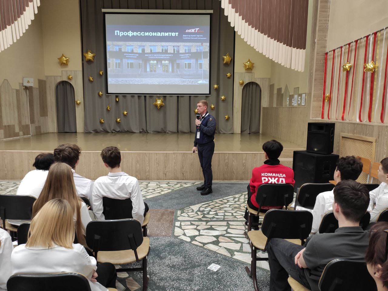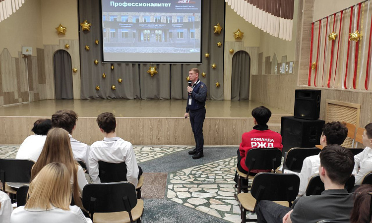 21 января начальник центра профориентации и развития карьеры выпускников КрИЖТ Александр Ярыгин и специалист по связям с общественностью Роман Нечаев провели совместное с Красноярской железной дорогой профориентационное мероприятие с учениками лицея № 10.