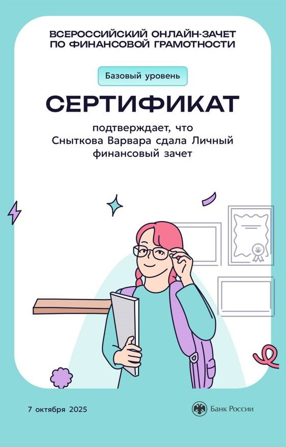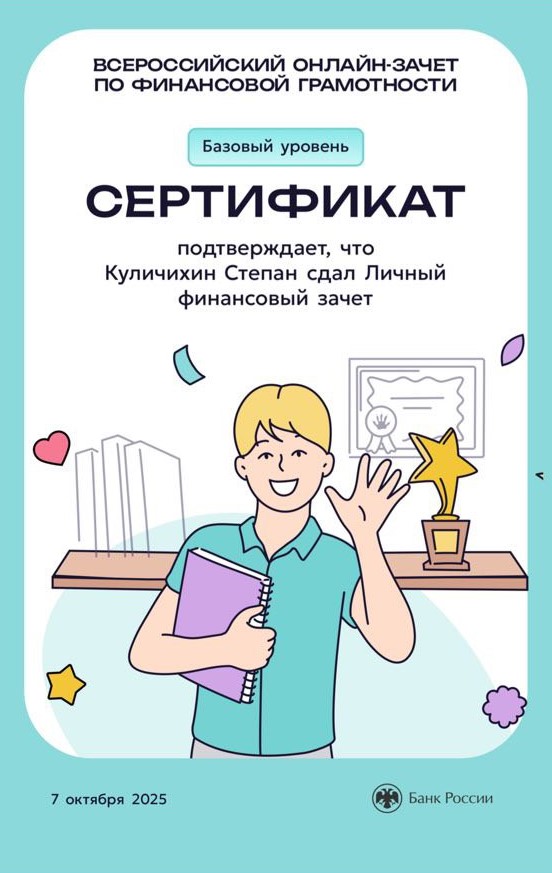 Студенты КрИЖТ уже проверили свои силы на Всероссийском онлайн-зачете по финансовой грамотности и получили крутые сертификаты.