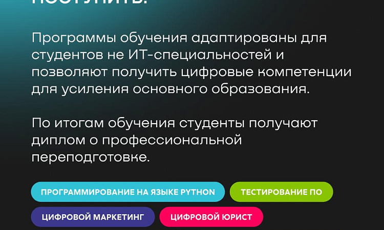 Открыт набор на программы профессиональной подготовки 2025/26 учебного года для студентов не ИТ-направлений