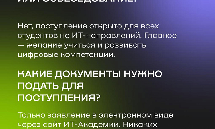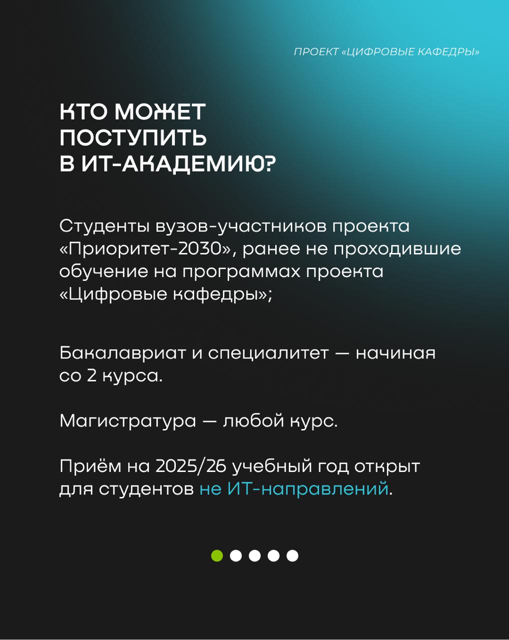 1. На программу принимаются студенты не-ИТ направлений по основному обучению бакалавриата или специалитета 2 курса и выше, магистранты любого курса и любого направления (даже айтишного).