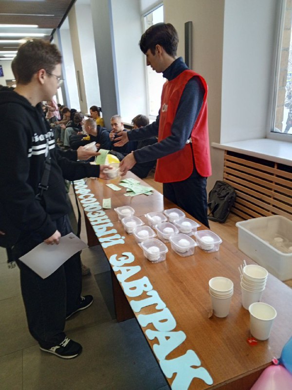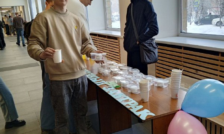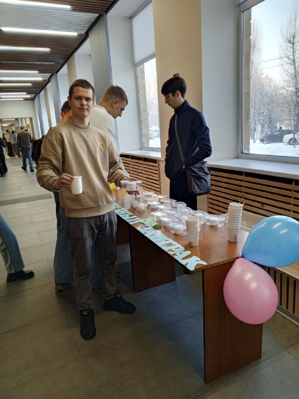 Самые активные и позитивные студенты, приняв участие в поздравительной акции и конкурсах, смогли получить сертификат на бесплатный десерт-завтрак. Это отличная возможность для студентов начать свой день с вкусного и калорийного сладкого подарка, не беспокоясь о расходах.