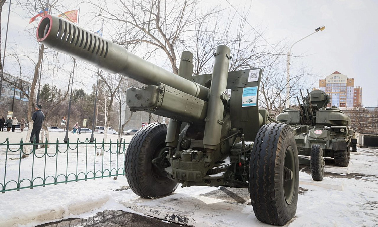 Форум открылся на территории музея под открытым небом Военно-инженерного института СФУ с торжественного внесения Государственного флага Российской Федерации и копии Знамени Победы.