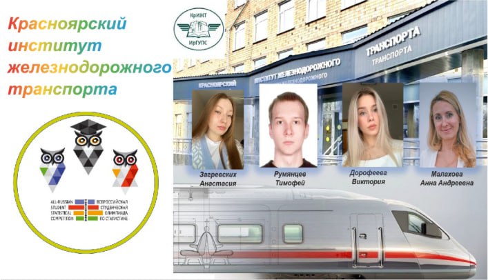 В период с декабря 2024 г. по апрель 2025 г. команда студентов Красноярского института железнодорожного транспорта 3 курса направления «Экономика» в составе Румянцева Тимофея, Загревских Анастасии, Дорофеевой Виктории под руководством доцента кафедры «Управление персоналом» Малаховой Анны Андреевны принимала участие в ХV Всероссийской студенческой олимпиаде по статистике, проводимой Федеральной службой государственной статистики совместно с Российским экономическим университетом им. Г.В. Плеханова. Эта олимпиада - статусное мероприятие, уже ставшее традиционным и знаковым в профессиональном сообществе, которое в этом году объединило команды 99 российских вузов из 56 регионов страны.